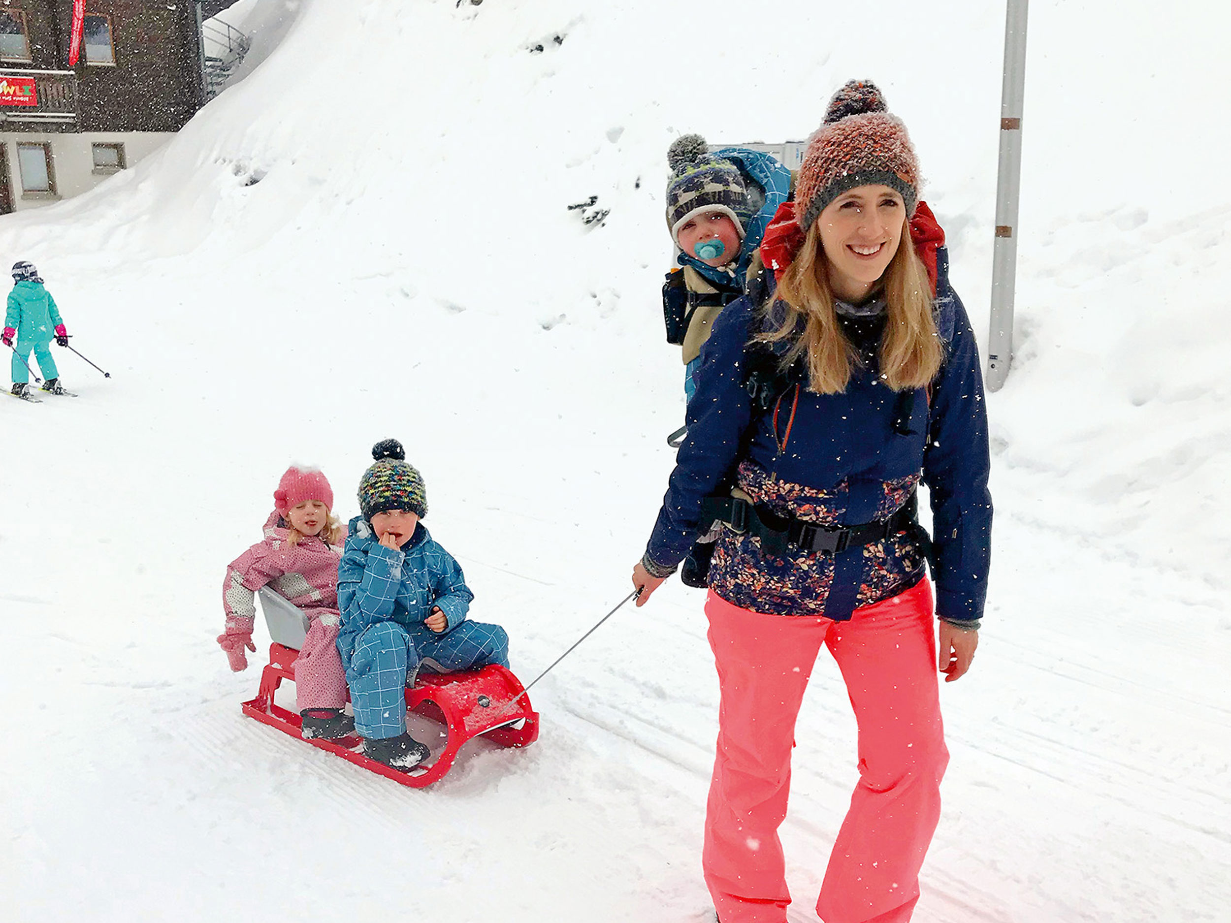 Zweite Disziplin: Laufmüde Kinder und Ski zur Piste befördern. Ein paar Hände und eine Schulter für die eigenen Ski fehlen, sobald sich mehr als ein Kind weigert, zu gehen. Noch Fragen? Wir sind die weinenden Eltern mit den genervten Kindern am Strassenrand – oder umgekehrt.