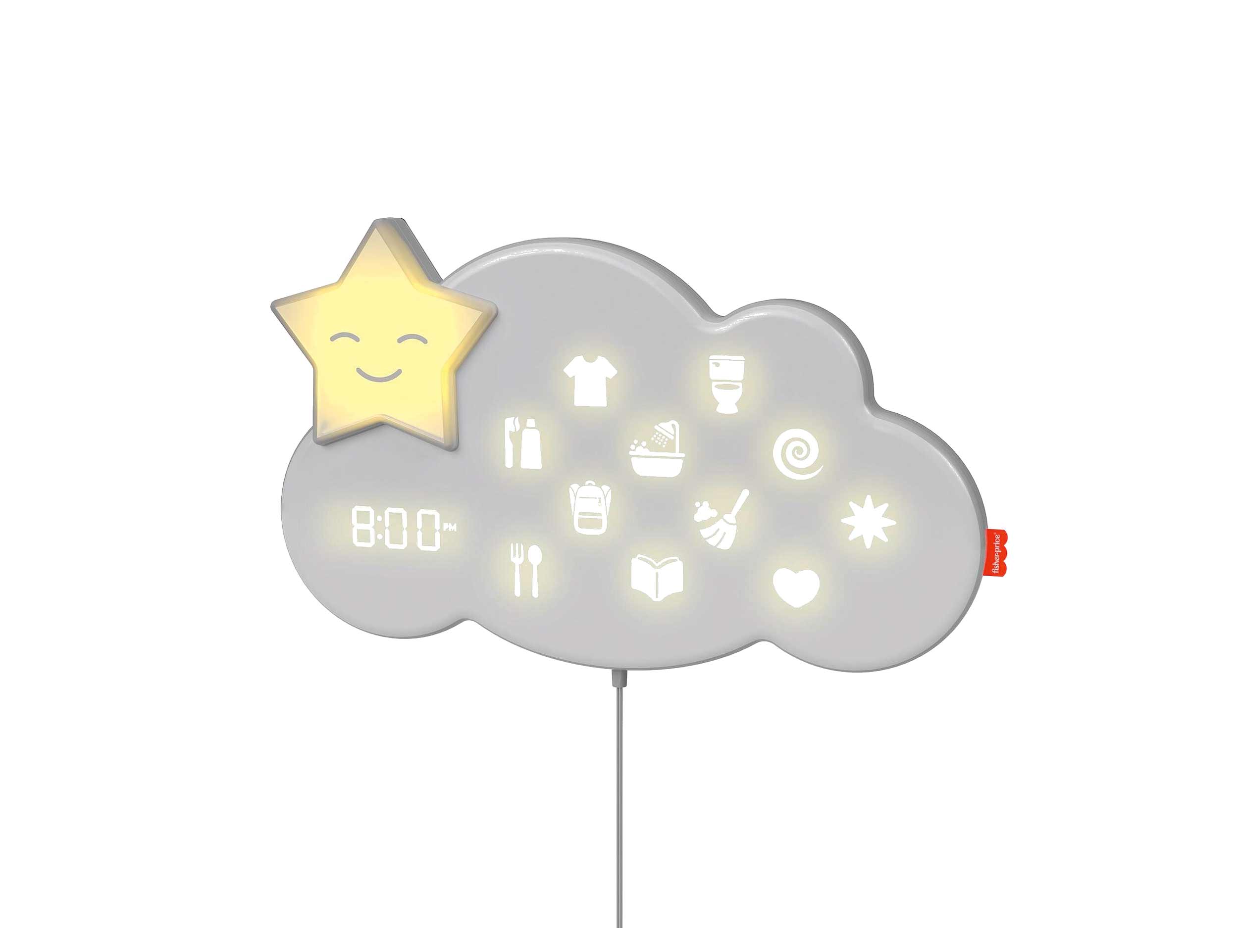 Das Nachtlicht für die Führungskräfte von morgen. Dieser Gedanke beschleicht einen unwillkürlich. Die Lampe hängt an der Wand, hat ein Display mit verschiedenen Symbolen und das Kind kann per Fernbedienung verschiedene Stationen der Abendroutine als erledigt markieren. Gewaschen? Check. Zähne geputzt? Check. Zur Belohnung gibts Musik. Ach ja, leuchten tut das futuristische Teil auch. Smart-Tech-Training von Anfang an. Eignet sich für Kinder bis weit ins Primarschulalter.