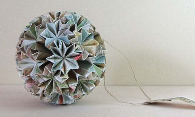 Wer besonders geschickt ist, kann aus alten Land- und Seekarten mit der japanischen Origami-Falttechnik ebenfalls hübsche Christbaumkugeln vernähen. Der Hingucker am Bäumchen.