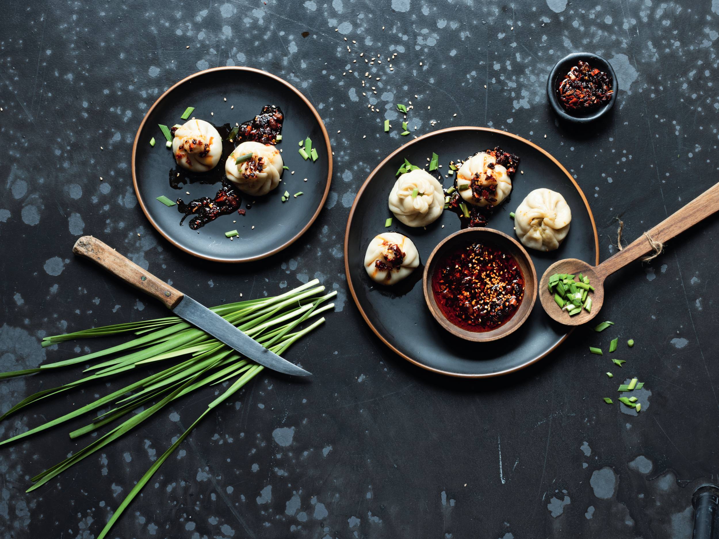 4 Dämpfen: Dämpfkörbchen in eine weite Pfanne stellen. Wasser bis knapp unter den Körbchenboden einfüllen, Momos portionenweise im Dämpfkörbchen verteilen. Momos zugedeckt bei mittlerer Hitze ca. 15 Minuten garen. Mit Sojasauce oder Crispy Chili Öl servieren.