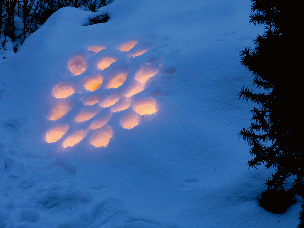 3 Dabei den Hügel möglichst nicht zusammentrampeln – am schönsten wirken die Lichter im spurenlosen unversehrten Schnee.