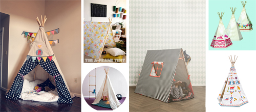 Hütten bauen, in Höhlen kriechen oder im Zelt hocken und das nächste Abenteuer aushecken – kleine Knirpse lieben es! Und wie gross die Auswahl in Sachen Tipis und Mini-Zelte überhaupt ist, wird einem klar, wenn man sich durch Kinderzimmerblogs oder Pinterest durchklickt. Zum einen gibt es unzählige hübsche Modelle zu kaufen, wie etwa das Tipi der französischen Künstlerin Nathalie Lété für das Label Vilac im klassischen Indianer-Look. Oder vom dänischen Hersteller Ferm Living in schlichtem Grafik-Design.