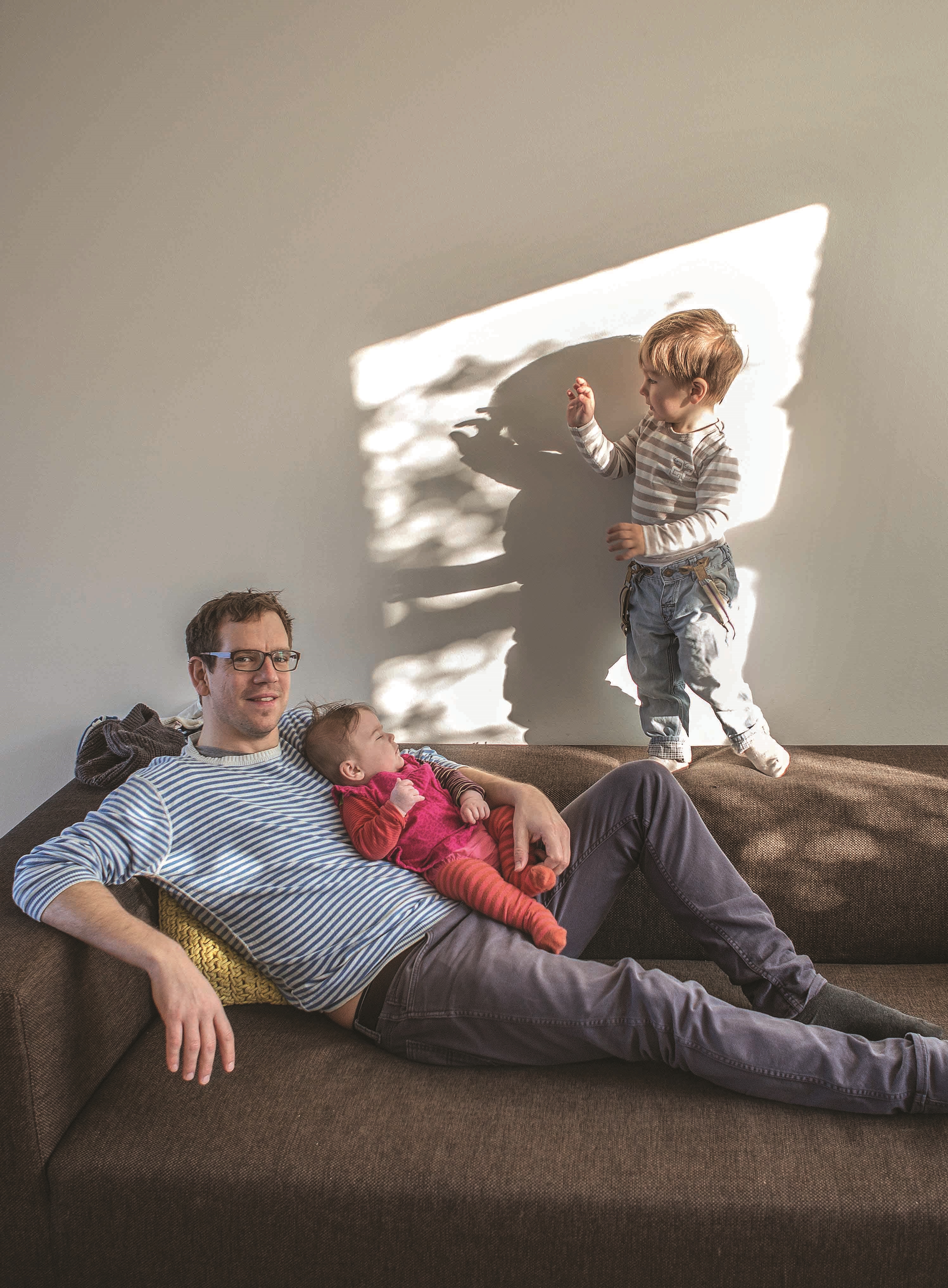 So auch Philip Gehri. Zwar liefen ihm die Tränen über die Wangen, als er in Einweg-Operationsgewänder gekleidet auf einem Stuhl im Gang darauf wartete, in den OP eingelassen zu werden, wo sein Sohn aus dem Bauch seiner Frau geholt werden sollte. Doch nicht aus Verzweiflung oder Angst: «Der Geburtsverlauf war die ganze Nacht lang ungewiss gewesen, und ich hatte gegen den Morgen immer wieder um Fassung ringen müssen. Als sich nun die Hebammen auf dem Gang vor dem Operationssaal von mir verabschiedeten, brach ich in Tränen aus», erinnert er sich. Besorgt fragten die Hebammen, ob er beim Eingriff dabei sein wolle. Er wollte und beobachtete die kontrollierte Situation im Operationssaal fasziniert. «Endlich ging etwas. Das war spannend und erlösend zugleich.»