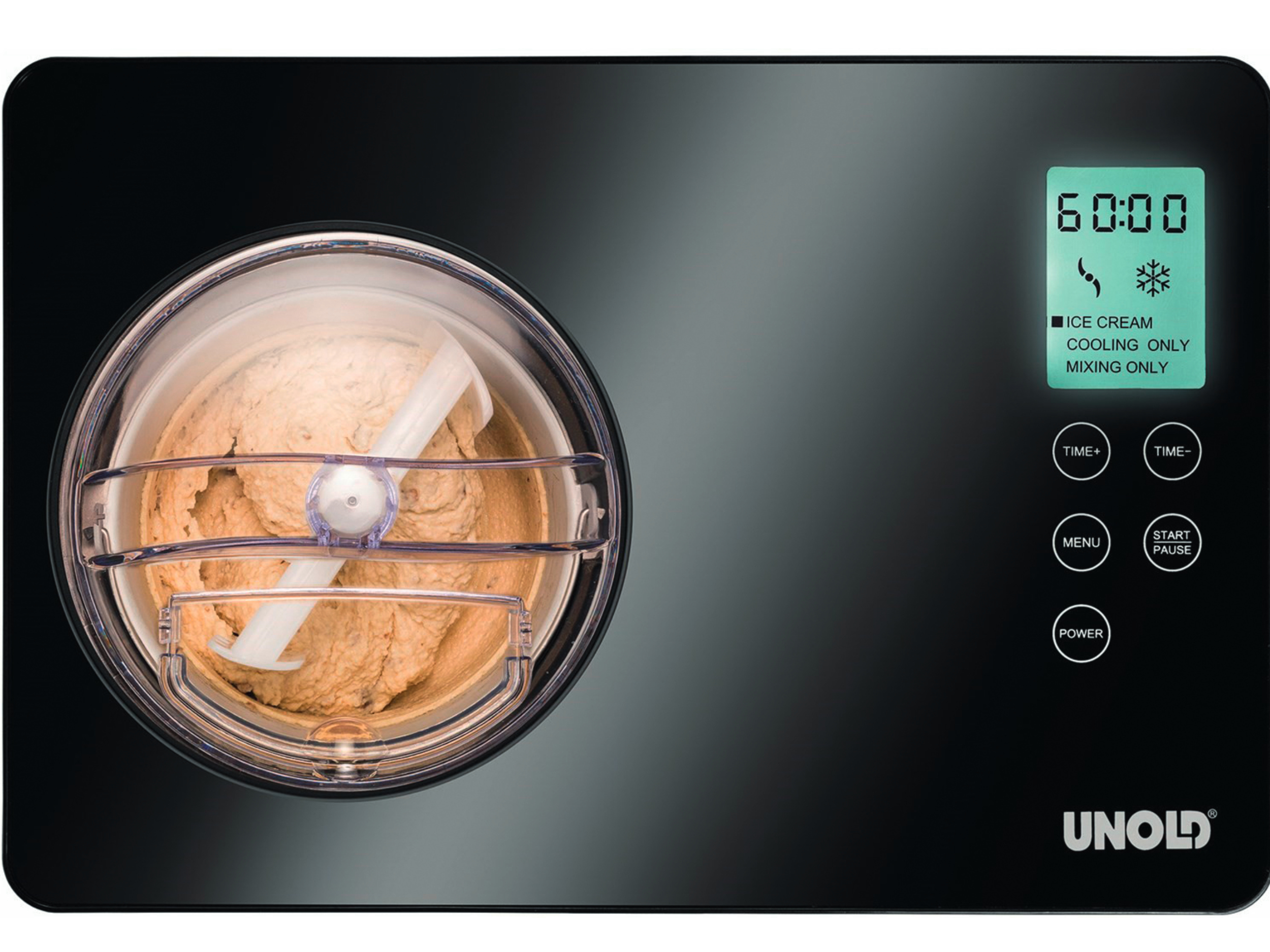 Ein günstiger Einstieg in die Eiswelt ist diese Maschine. Für Spontane eignet sich die Unold aber nicht: mangels eines Kompressors muss der Eisbehälter wie ein Kühlakku zuvor 12 Stunden in den Gefrierschrank. Auch die Zutaten sollten unbedingt vorgekühlt sein. Dann schafft die Unold bei nicht zu warmer Aussentemperatur bis zu 1,5 Liter cremige Glace – was im Sommer aber vor dem Verzehr im Gefrierer noch nachgekühlt werden muss. Bedient wird die Eismaschine unkompliziert über ein Touchdisplay mit Restzeitanzeige. Der Motor stört nicht, die Reinigung ist schnell erledigt. ca. Fr.69.– bei venova.ch