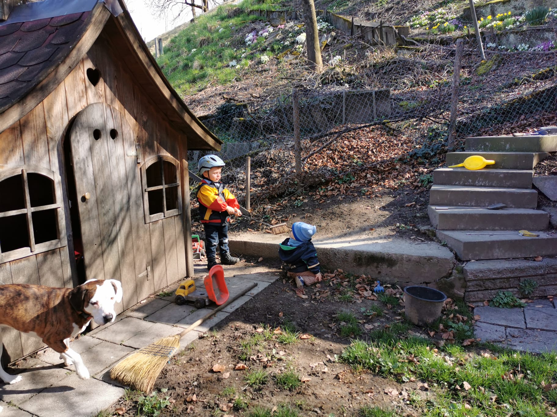 Jacqueline aus dem Kanton Bern erzählt: «Unsere Buben Marvin (3) und Mailo (11 Monate) und unser Hund Janis geniessen das schöne Wetter in unserem Garten. In unserem Alltag hat sich nicht sehr viel verändert, ausser dass wir nicht mehr auf den Spielplatz gehen und leider nicht mehr mit anderen Kindern abmachen können. Im Moment stört das die Buben aber noch nicht, Marvin macht sehr gerne Puzzles, wir zeichnen, basteln, oder schauen halt auch mal Fernsehen. Feuerwehrmann Sam oder Paw Patrol sind hoch im Kurs.»