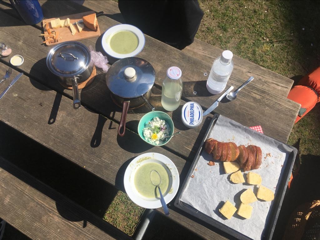 «Alle haben ihr eigenes Geschirr mitgebracht, es gab eine immunsystemstärkende Suppe aus jungen Brennnesseln, Scharbockskraut und Giersch, dazu Chnoblibrot, extra «hochdosiert», um Social Distancing zu unterstützen. Wir nutzen die Zeit vor einer allfälligen Ausgangssperre!»