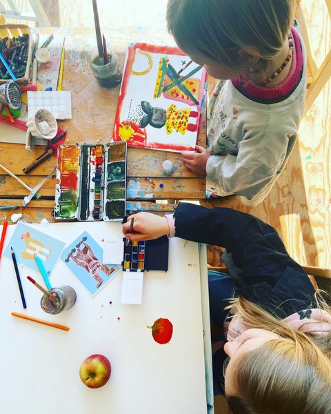 «Momentan sitzen wir meistens zu fünft in unserem Atelier. Die Kinder arbeiten da an ihren Schulaufgaben und ich versuche meinen Projekten gerecht zu werden.