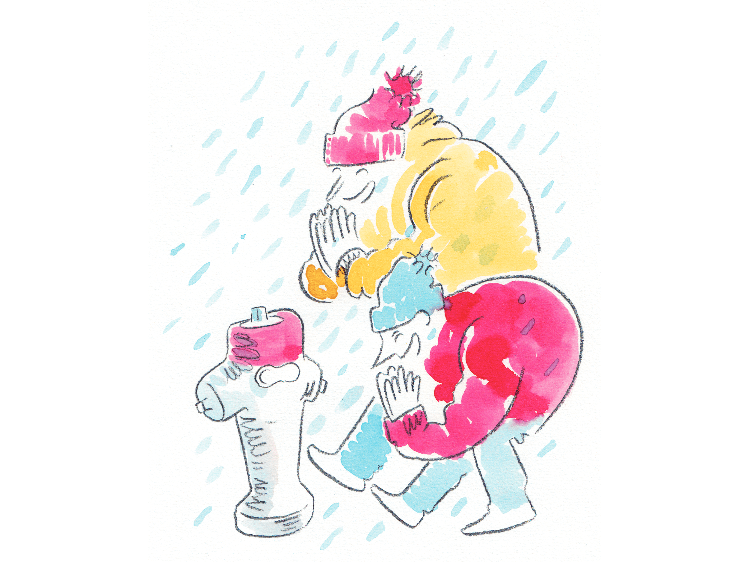 Als ich wieder mal mit Julia zur Oma spazierte ging, fing ich aus einer Laune heraus an, alle Hydranten zu grüssen, die er an der Strasse entdeckte. Vielleicht, weil der Weg mit der kleinen Julia mindestens fünfundnulllzehnmal länger dauerte als ohne sie. Oder weil ich gerade in besonders freundlicher Stimmung war. So genau weiss ich das nicht mehr. Auf jeden Fall machte Julia sofort mit, auch beim nächsten Oma-Besuch. Von da an wurde Hydrantengrüssen unser beliebtes Vater-Tochter-Spiel, wann immer wir zu Fuss unterwegs waren. Es sorgt für Spass und kann nahezu überall gespielt werden, wo es Häuser gibt, denn in der Schweiz gibt es viele Tausend Hydranten, alleine in der Stadt Zürich 9000. Noch heute ertappt sich Julia, die in zwei Wochen schon 19 Jahre wird, manchmal dabei, dass sie einem besonders auffälligen Hydranten im Vorbeigehen einen Gruss zuwirft. Einen stummen allerdings.