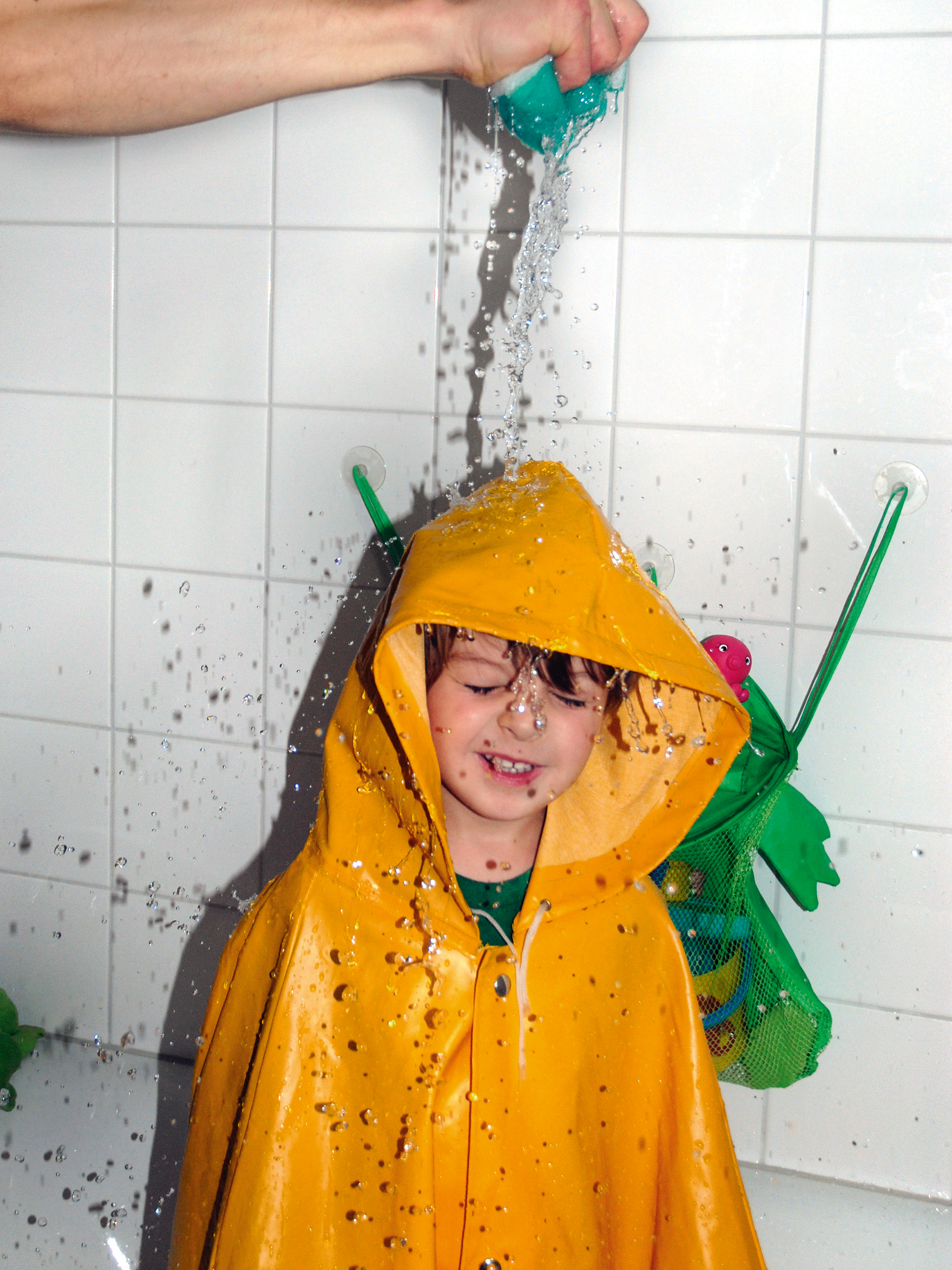 Auf unserer Erde hat es dreimal so viel Wasser wie Land. Wir finden Wasser im Meer, in Flüssen oder Seen. Da die Sonne Wasser verdunsten lässt, finden wir es als unsichtbaren Wasserdampf auch in der Luft. Dies nennen wir Luftfeuchtigkeit. Der Wasserdampf steigt mit der warmen Luft nach oben. Weil es dort oben kalt ist, verwandelt sich der Wasserdampf zu feinsten Tröpfchen oder Eiskristallen. Es bilden sich Wolken. Der Wind formt die Wolken und an ihnen kann man das Wetter ablesen. Wenn es in der Wolke kälter wird, fliessen immer mehr Wassertröpfchen zusammen, bis sie so schwer sind, dass sie als kleine Regentropfen herunterfallen. Grosse Regentropfen entstehen, wenn sich Eiskristalle zu Schneeflocken zusammentun und beim Herunterfallen in den unteren, wärmeren Luftschichten auftauen. Regen nennt man auch Niederschlag und dieser fühlt sich auf unserer Haut nass an.