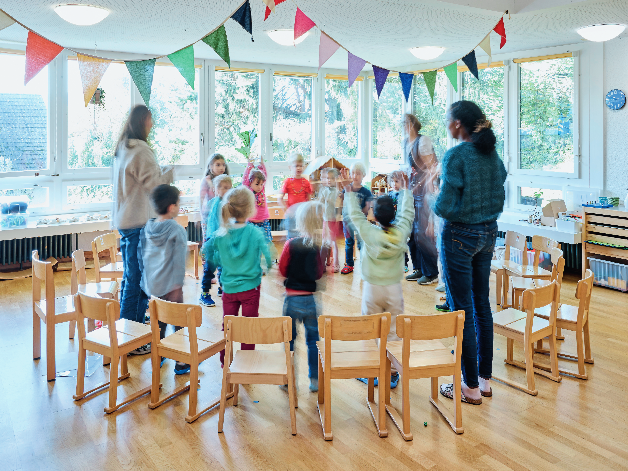 «Ich habe Hunger», sagt ein Kind, ein anderes möchte heimgehen und nicht mehr spielen, es beginnt zu weinen. Es ist beinahe 12 Uhr mittags. Rahel begleitet einige Kinder in die Garderobe, hilft beim Packen der Rucksäcke, leitet beim Anziehen an und schlichtet einen Streit zwischen zwei Jungs. Die Kinder stellen sich in einer Reihe auf und verabschieden sich bei der Lehrperson und Rahel. «Tschüss, liebe Kinder», sagt Rahel im lauten Gewusel und beginnt danach das Klassenzimmer aufzuräumen. Heute Nachmittag gehe es dann nur mit den grossen Kindergärtnern weiter, sagt sie: «Und morgen ist Dienstag, da habe ich am Nachmittag frei und lerne. Aber erst gehe ich dann im Wald spazieren, das hilft mir am besten beim Verarbeiten.»