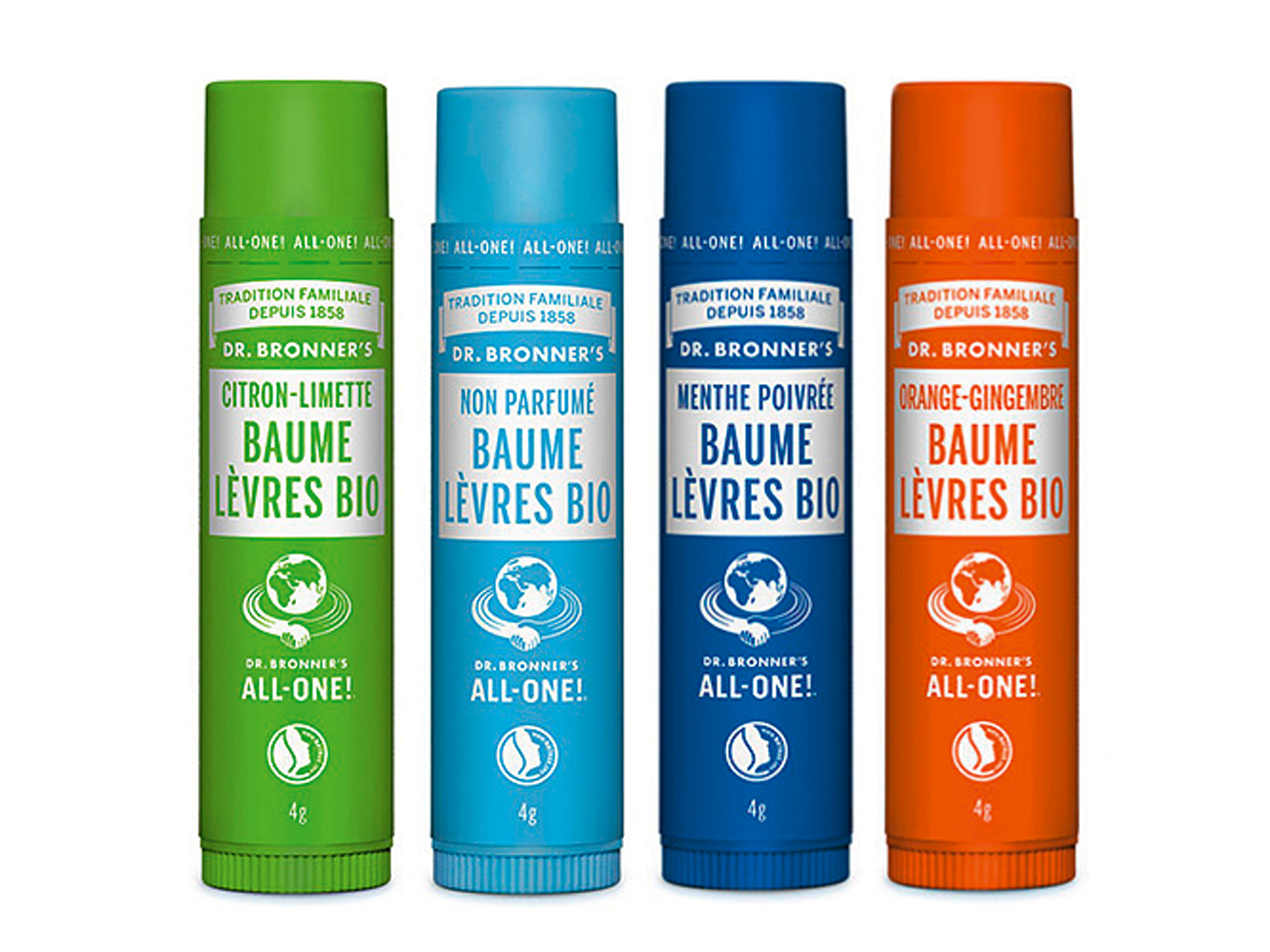 Dr. Bronners steht seit seiner Gründung 1948 für umweltfreundliche Produkte, fairen Umgang mit seinen Lieferanten und gesellschaftliches Engagement. Die eingesetzten Inhaltsstoffe stammen seit 60 Jahren aus zertifiziertem Bioanbau und zertifiziertem fairem Handel. Bienenwachs sowie Jojoba- und Avocadoöl schützen bei dieser Pomade die Lippen. Der Lippenbalsam gibt es in den Geruchsnoten Pfefferminze, Zitrone/Limone, Orange/Ingwer und Neutral, unter dem Namen Hurraw! auch mit mineralischem Sonnenschutz.