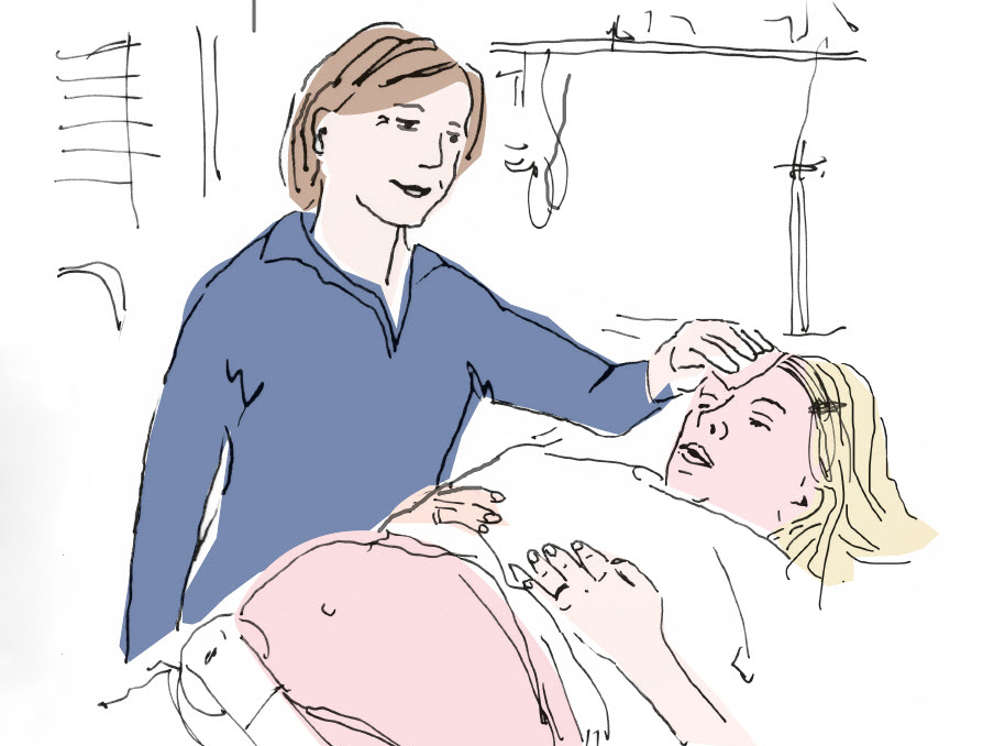 Dienstagmorgen, sechs Uhr, nach einem Fingerhut voll Schlaf schrillt erneut mein Handy. «Mama, bitte komm’ sofort – ich halte das nicht aus!» Ich steige aufs Velo, eine halbe Stunde später bin ich auf der Gebärabteilung, wo meine Tochter mittlerweile wimmernd und verschwitzt auf dem funktionalen Spitalbett liegt. Daneben steht Bojan und tritt nervös von einem Bein aufs andere. Wie eine Welle überrollt ihn die Übelkeit, jedes Mal, wenn Sophia sich durch eine Wehe kämpft. Als ich ihm anbiete, zwei Stunden zu übernehmen, damit er sich ausklinken kann, nimmt er dankbar an. Bei mir legt sich nun jener Schalter um, der die Emotionen wegdrückt und den Kopf klar und rational denken lässt. Auch Sophia scheint sich zu entspannen.