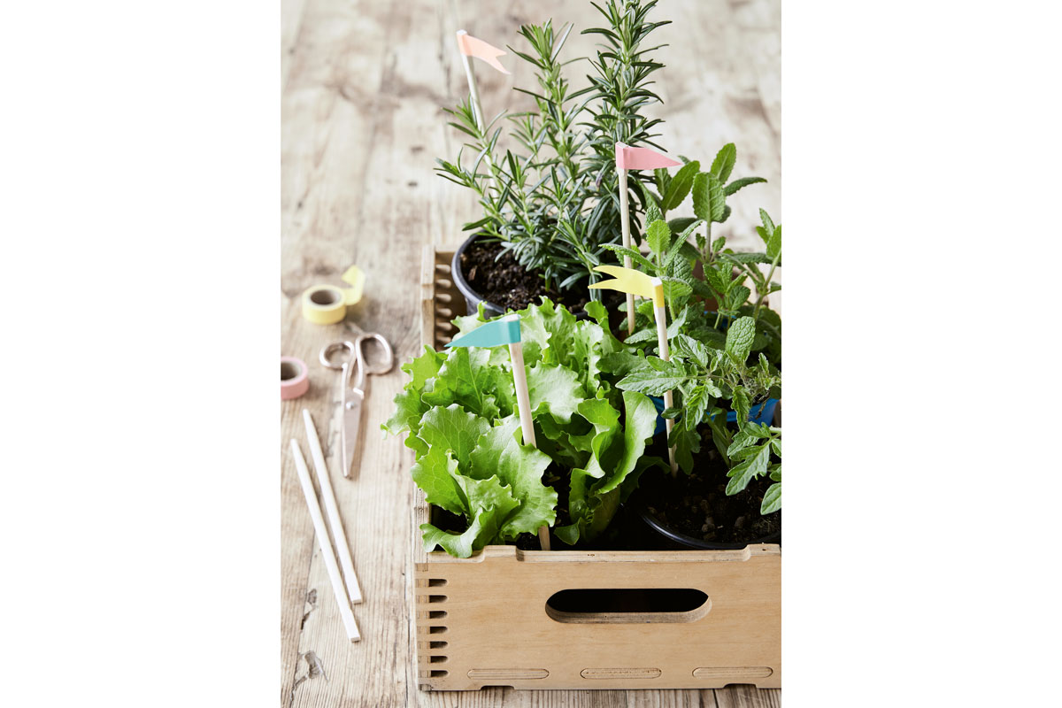 3 Wenn die Blätter etwas grösser geworden sind, die Sellerieknolle in einen Topf mit Erde umpflanzen. Die Spitzen der Blätter sollen dabei sichtbar bleiben.