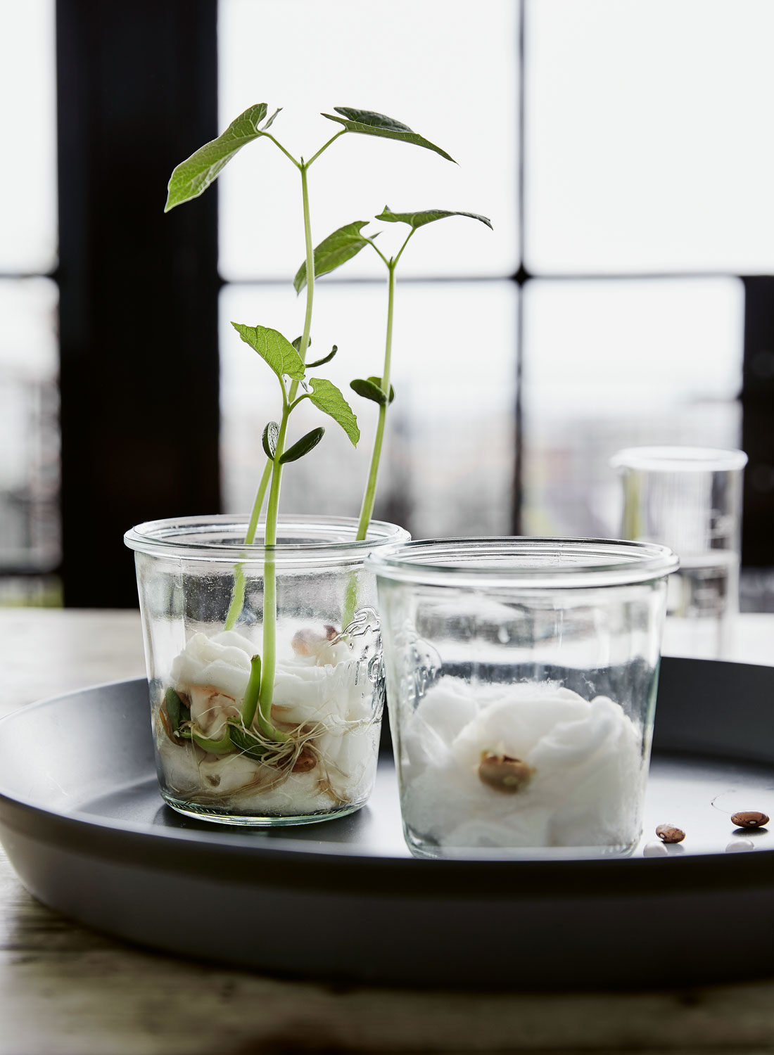 2 Das Gefäss auf das Fensterbrett stellen, wo es mildes Sonnenlicht bekommt. In etwa fünf Tagen wachsen neue Blätter.