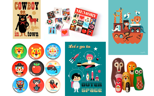 Ob Memory, Melanin-Teller, Matryoshka oder Poster – die Figuren der schwedischen Illustratorin Ingela P Arrhenius zaubern ein Lächeln auf jedes Gesicht. Sie leuchten in satten Farben und bestechen durch klare Linienführung und Einfachheit. Mit grossen Augen und runden Formen gezeichnet, fahren Tier und Mensch auf der Arche Noah, fliegen ins All, sind Cowboys im Wilden Westen oder streifen durch europäische Grossstädte. Lebensfreude strahlen die Arbeiten der Schwedin allesamt aus und passen darum perfekt in jedes Kinderzimmer.