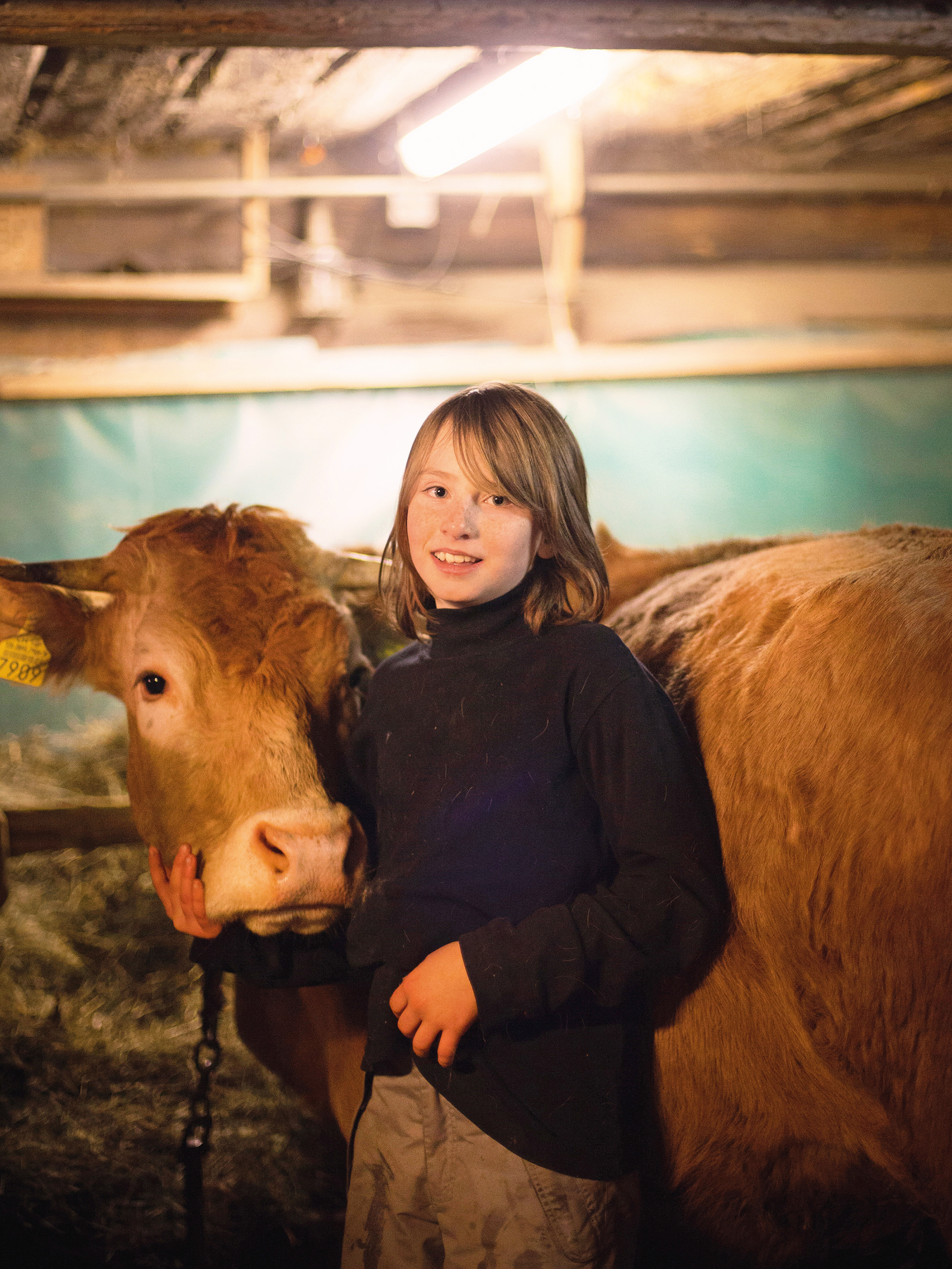 Die Lektion «Natur der Dinge» lernen die Kinder hier schnell. Und auch, dass Natur nicht immer «schön» bedeutet. Manchmal kann sie sogar ziemlich grausam sein. Vermutlich im November beispielsweise zu «Gürkli». Zehn Monate ist das braunweisse Kälbchen dann alt. Zeit, um Bio- Beef zu werden. Noch schnuppert der kleine Stier an Lydias Händen, nuckelt an ihrer Skihose, stuppst Peter, das andere Stierkälbchen, mit den winzigen Hörnern und hüpft im Stall von Bauer Fluri herum. Der Schlachter ist fern, Lydia nah.
