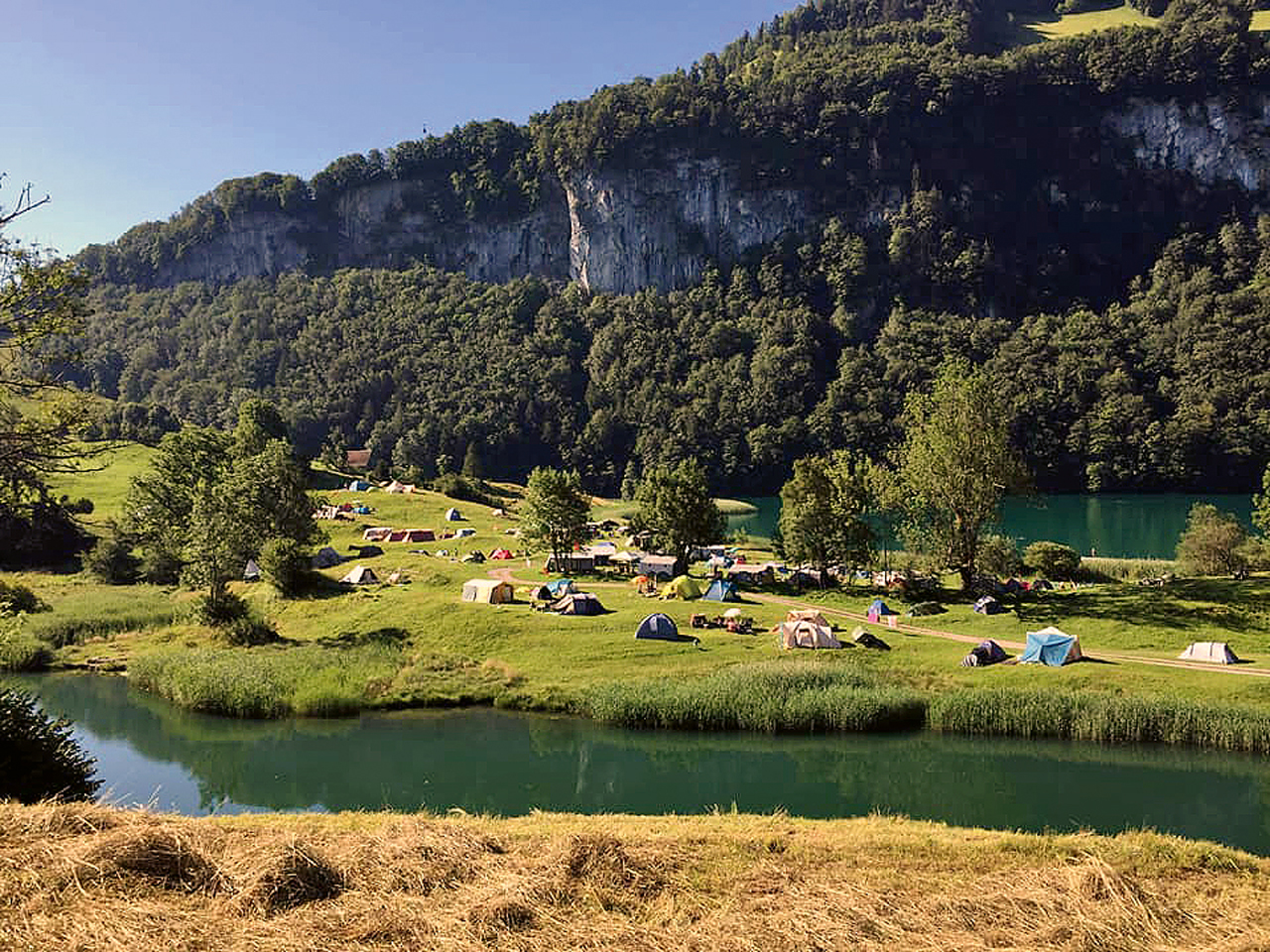 Ein Traumplätzchen! Auf dem Naturcamping am Seelisberger Seeli stellt man sein Zelt am Schilfufer auf, Dusche, Kiosk, Waschmaschine und Grillstellen stehen zur Verfügung. Die Naturbadi auf dem Gelände ist beaufsichtigt und bietet Kinderbecken, Beachvolleyball, Sprungbrett, Floss und eine Ruderbootsvermietung.