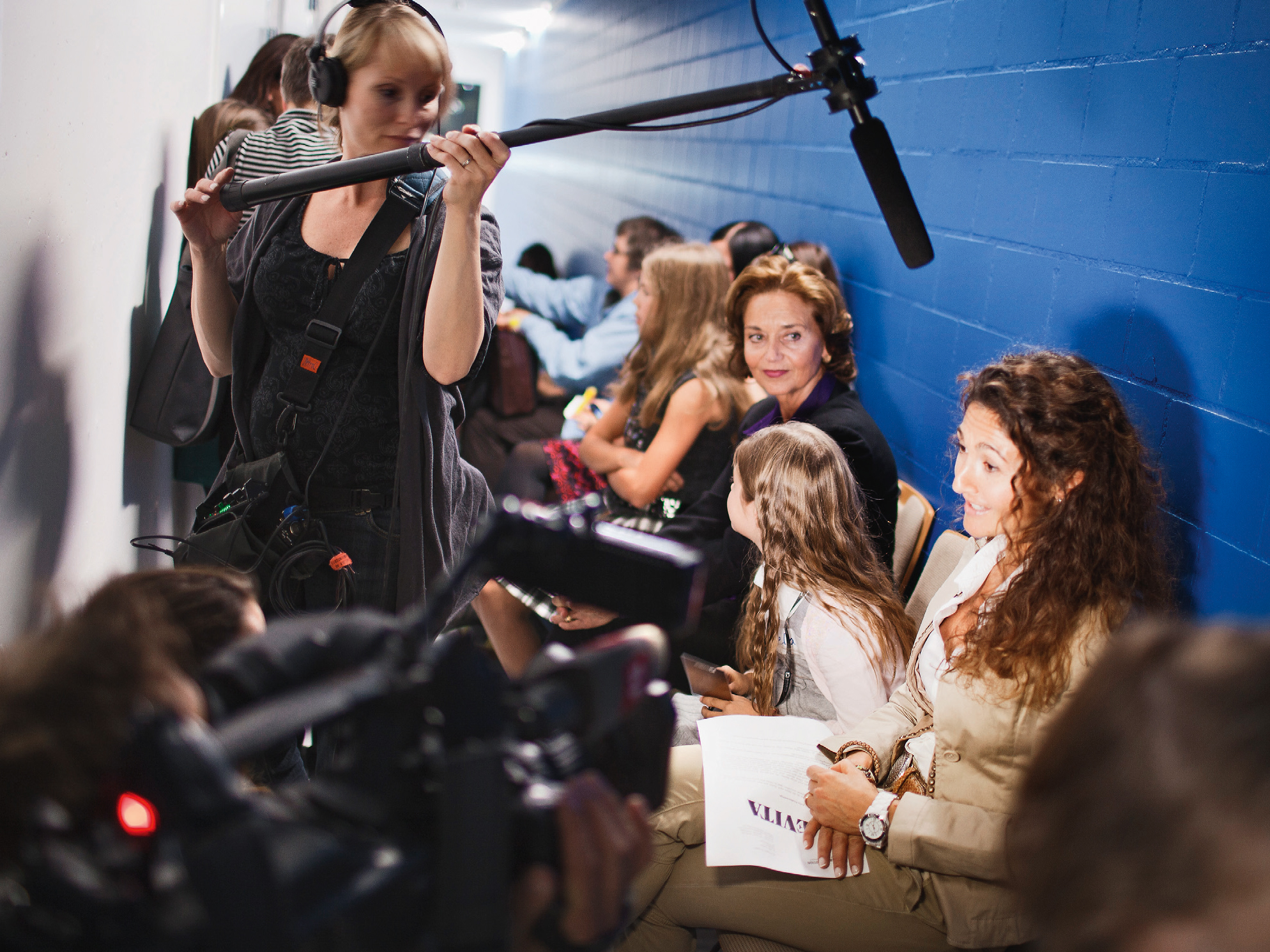 Während sich die Bewerberinnen einschreiben und ihre Dokumente abgeben, erhalten die anwesenden Journalisten eine Liste mit Namen, Alter und Wohnort der angemeldeten Mädchen. Aus der ganzen Schweiz sind sie angereist, aus Böttighofen, Buchrain oder Wil bei Bern. Nun werden die Kinder und Mütter in den grossen Saal gebeten, in dem die beiden Jurymitglieder und eine Pianistin warten. Jurorin Kristina Keienburg, die für die deutsche Aufführung zuständig ist, begrüsst die Mädchen herzlich. Und der zweite Juror, der Engländer David Steadman – seit über zehn Jahren offizieller «Musical Director» der Evita-Produktion –, hilft äusserst sympathisch über die sprachliche Barriere hinweg: «Don’t worry» – kein Grund, nervös zu sein. Nach einem kurzen Einsingen und spielerischen Aufwärmübungen mit Pianistin Chin werden die Kandidatinnen wieder hinaus begleitet, um im Flur auf ihren Auftritt zu warten. Uhren-Check: 16:45. Es geht los!