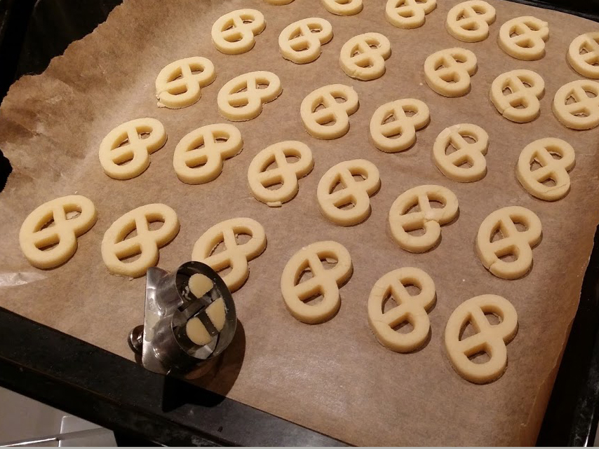 Variante: Teig auswallen (3-4 mm dick), Brezeli oder andere Formen ausstechen.
