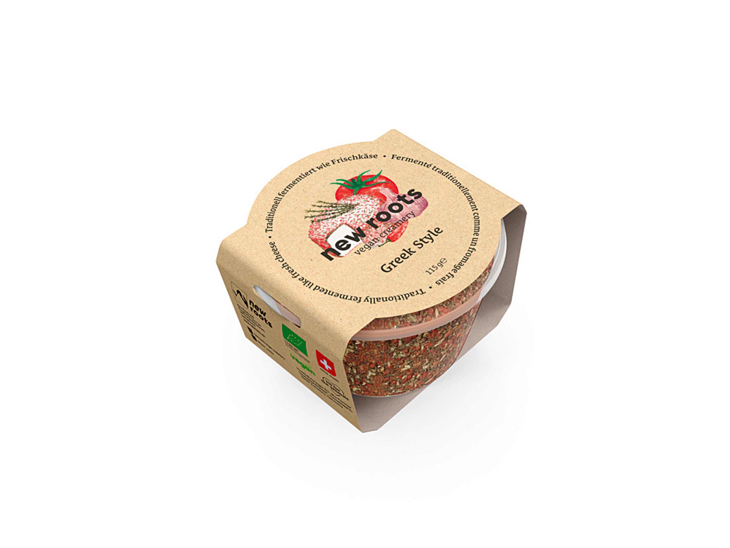 Diese fermentierte Frischkäsealternative aus Cashews sieht dank ihrer Gewürzumhüllung nicht nur toll aus, sondern schmeckt auch so. New Roots ist ein junges Schweizer Unternehmen, das sich der Entwicklung von veganen Käsereierzeugnissen verschrieben hat und eine grosse Produktevielfalt anbietet.