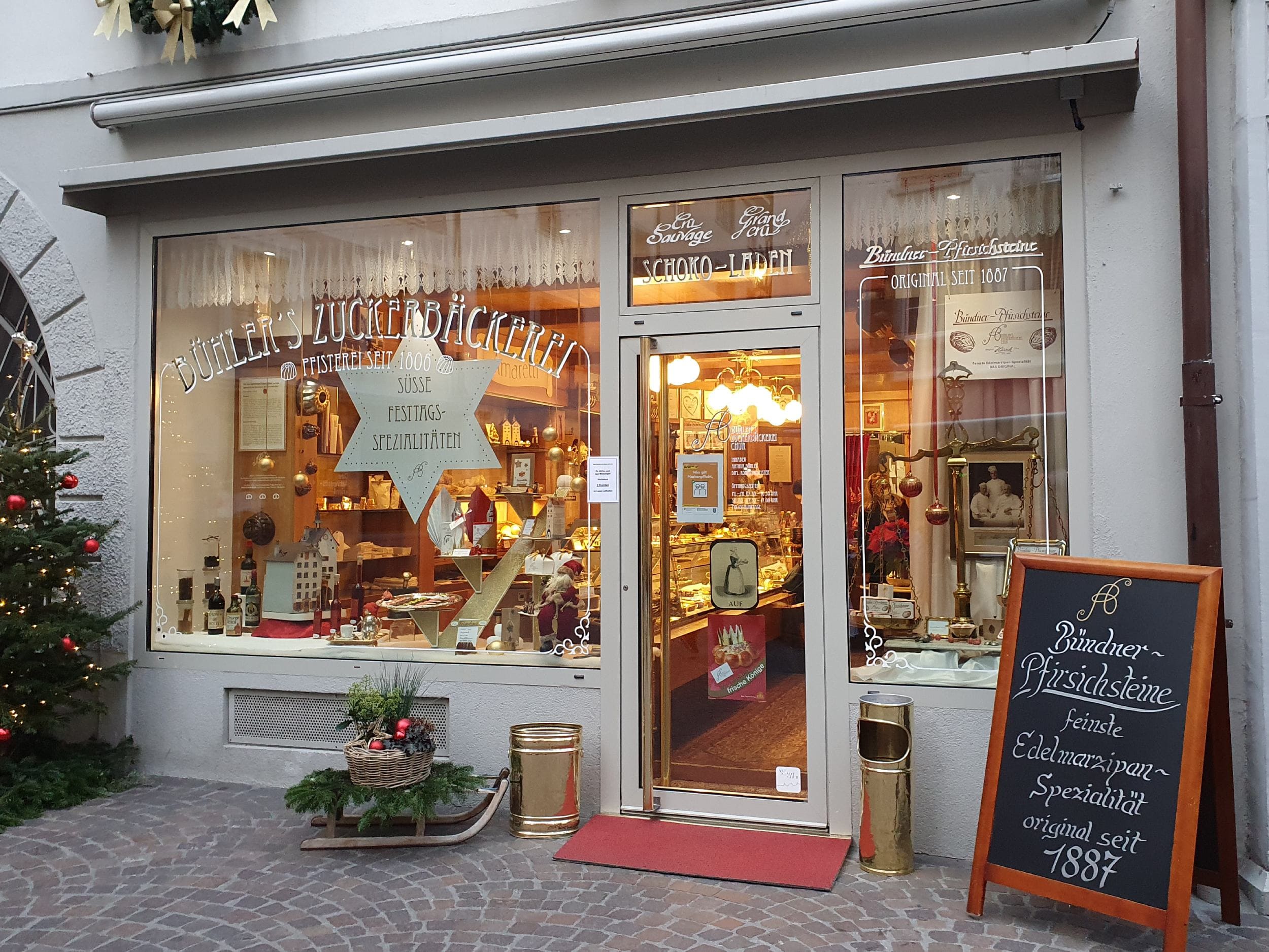In der Backstube über «Bühler’s Zuckerbäckerei» am Obertor wird seit über 200 Jahren gebacken. Heute sind Brot, Kleingebäck, Pralinen oder Spezialitäten wie die Bündner Pfirsichsteine im Angebot. Vorzüglich schmeckt das Capricorn-Brot!