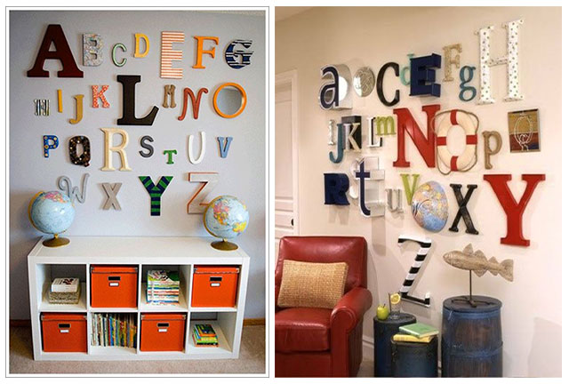 Dass Buchstaben nicht nur aufs Papier gehören, sondern sich auch als Wanddeko gut eignen, zeigen diese Beispiele (gesehen auf Pinterest):