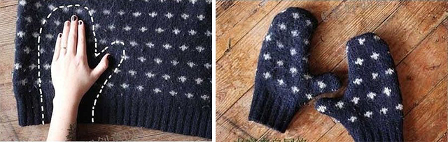 Liegt bei Ihnen vielleicht ein alter Norweger-Strickpullover rum, mit Mottenlöchern oder durchgescheuerten Ellbogen? Hier eine hübsche Verwertungs-Idee: Einfach aus dem schönen Stück ein paar neue Handschuhe schneidern.