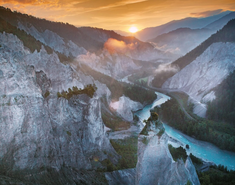 Weisse Felsen, tiefe Schluchten und ein türkis wild sprudelnder Rhein – Winnetou- Filme könnte man hier problemlos drehen. Am besten erst mal einen Blick in die Tiefe vom Aussichtspunkt in Versam wagen und dann unten am Rhein entlangwandern. Abenteuerlich.