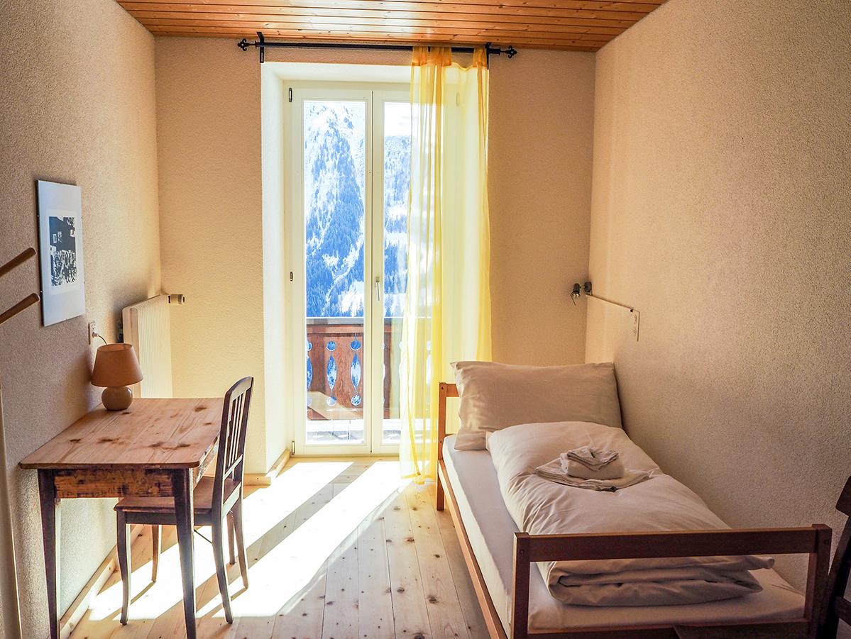 Luxus kann auch die Aussicht sein. Das Hotel Alpenblick ist geschmackvoll einfach (WC/Dusche auf der Etage), der Blick tief hinunter ins Tal vom Wintergarten aus ist dafür spektakulär. Spielkisten für Kinder, leckeres Essen, himmlische Ruhe.