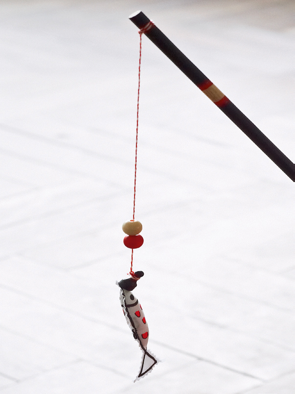 2. Schnur ablängen und ans Rundholz knöpfen.