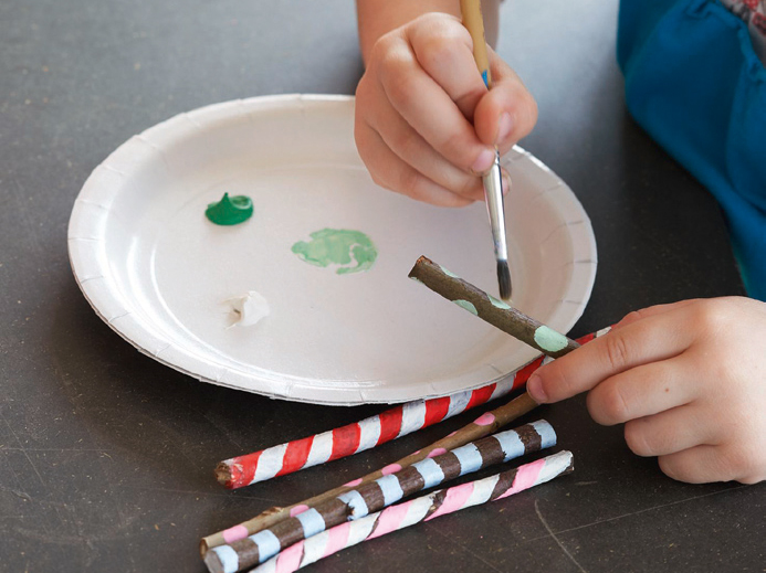 2 Mit Punkten, Streifen etc. bemalen.