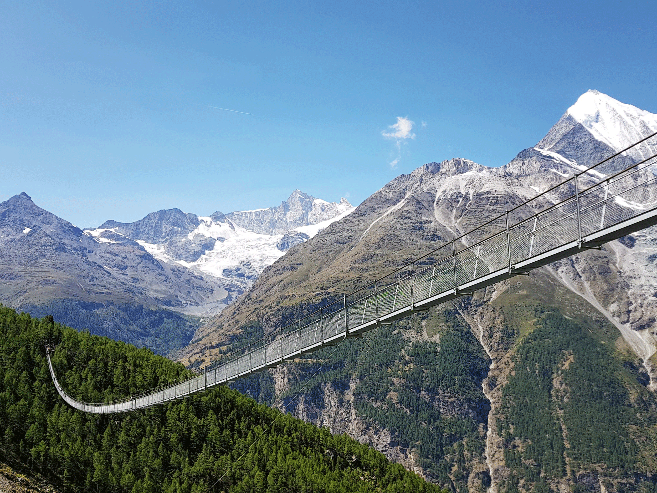 Wo: Wie wärs mit der längsten Hängebrücke der Schweiz, der Charles Kuonen mit 494 Metern, welche Zermatt mit Grächen verbindet?