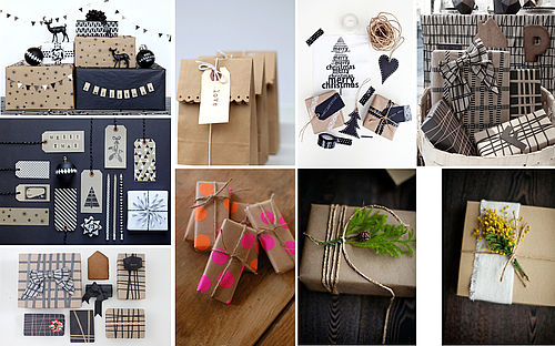 Wer behauptet, dass sehe doch überhaupt nicht festlich aus, irrt gewaltig. Zurzeit findet man auf zahlreichen Do-it-Yourself-Blogs coole Anleitungen, wie man Packpapier weihnachtlich «aufhübscht»: Weisse Spitzenuntersetzer aus Papier sorgen für einen romantischen Look, mit Zweigen und Tannzapfen versehen erhält man einen urchigen Touch, mit farbenfrohen Maskintapes oder Stempeln bekommt man grafische Muster – fühlt euch frei, tobt euch aus und inspiriert euch auf diesen Blogs: