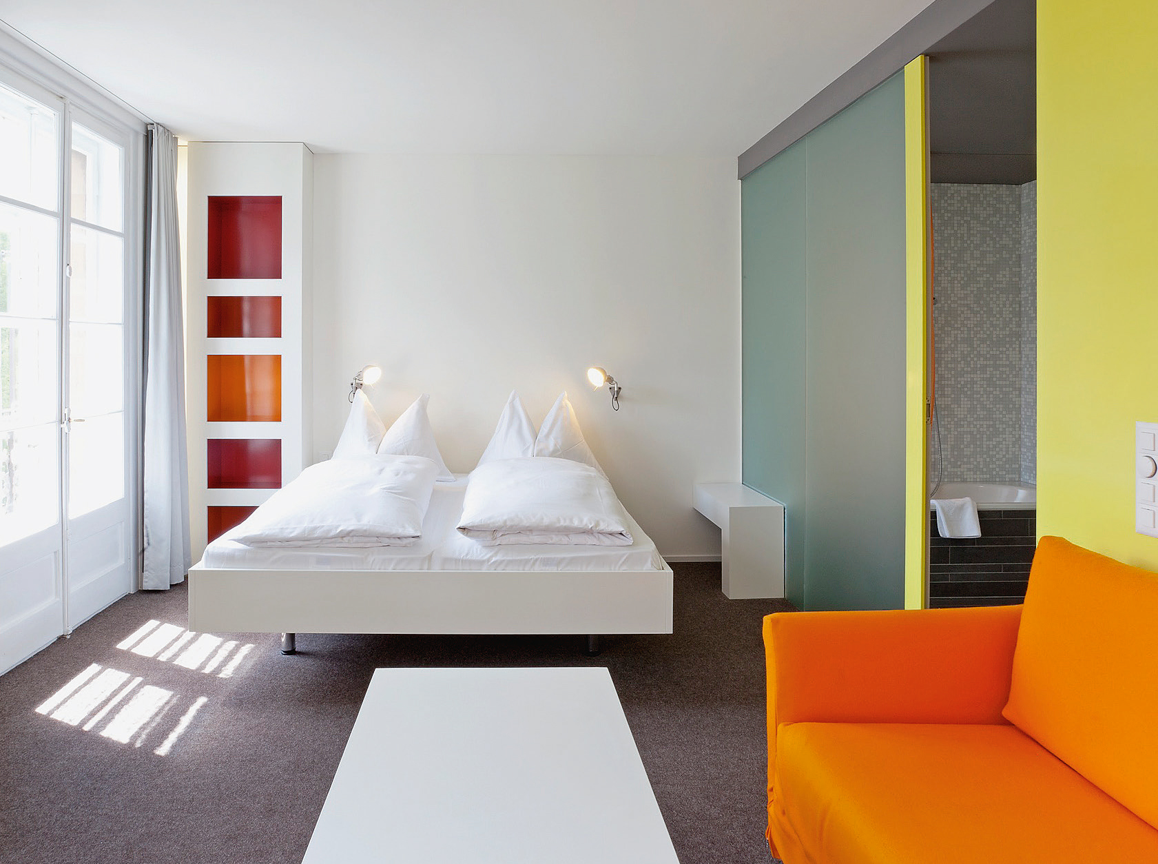 Neben der berühmten «Roten Bar» von Pipilotti Rist steht das Hotel Castell ganz im Zeichen der Kunst. Hier begegnet man Werken von Roman Signer oder Fischli & Weiss. Auf kleine Gäste wartet ein betreuter Kinderclub.