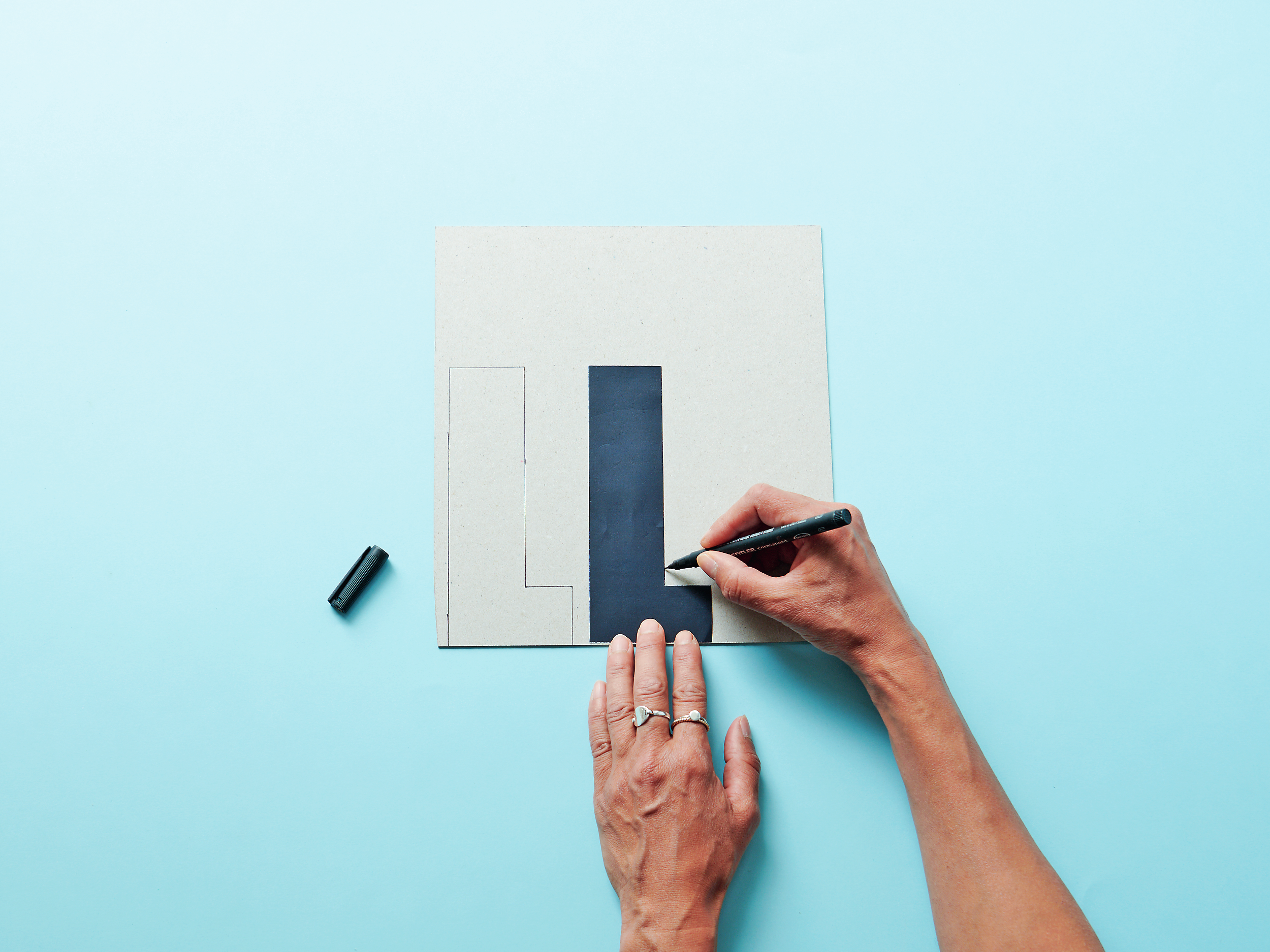 2 Jede Buchstabenvorlage 2× auf den Karton übertragen.