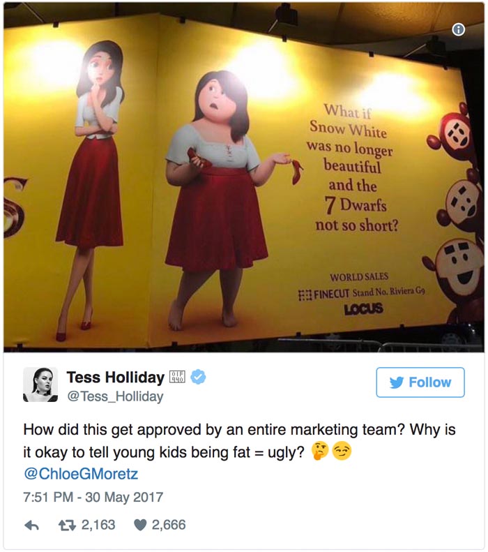 Die sozialen Medien liessen natürlich nicht lange mit Kritik auf sich warten: Das fragten sich ebenfalls viele Kommentatoren – darunter das Plus-Size-Model Tess Holliday - , warum es in irgendeiner Form okay sein sollte, Kindern zu vermitteln, dass dick = hässlich ist.