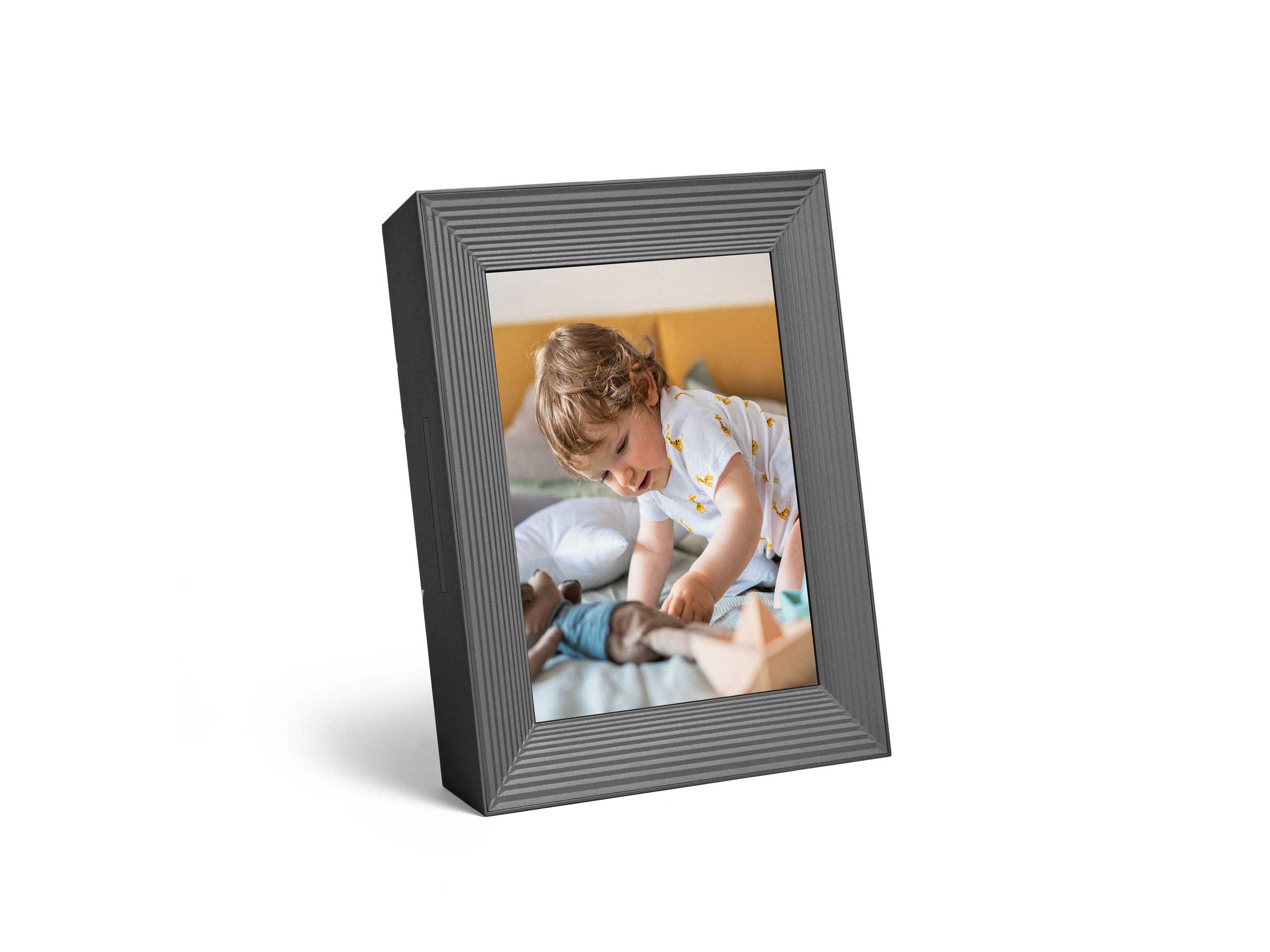 Auras Mason zeigt, dass Plastikrahmen schick und hochwertig sein können. IPS-Display und hohe Auflösung sorgen für erstklassige Bildqualitat auch von der Seite. Hoch oder quer aufstellbar, zeigt neben Bildern auch Videos bis max. 30s mit gutem Ton. Über die Aura-App lädt man Bilder und Videos in die Aura-Cloud und steuert, in welcher Form Geschwindigkeit und Reihenfolge die Bilder auf dem Rahmen gezeigt werden. Am Rahmen selbst erfolgt die Bedienung über zwei Sensoren an der Seite.