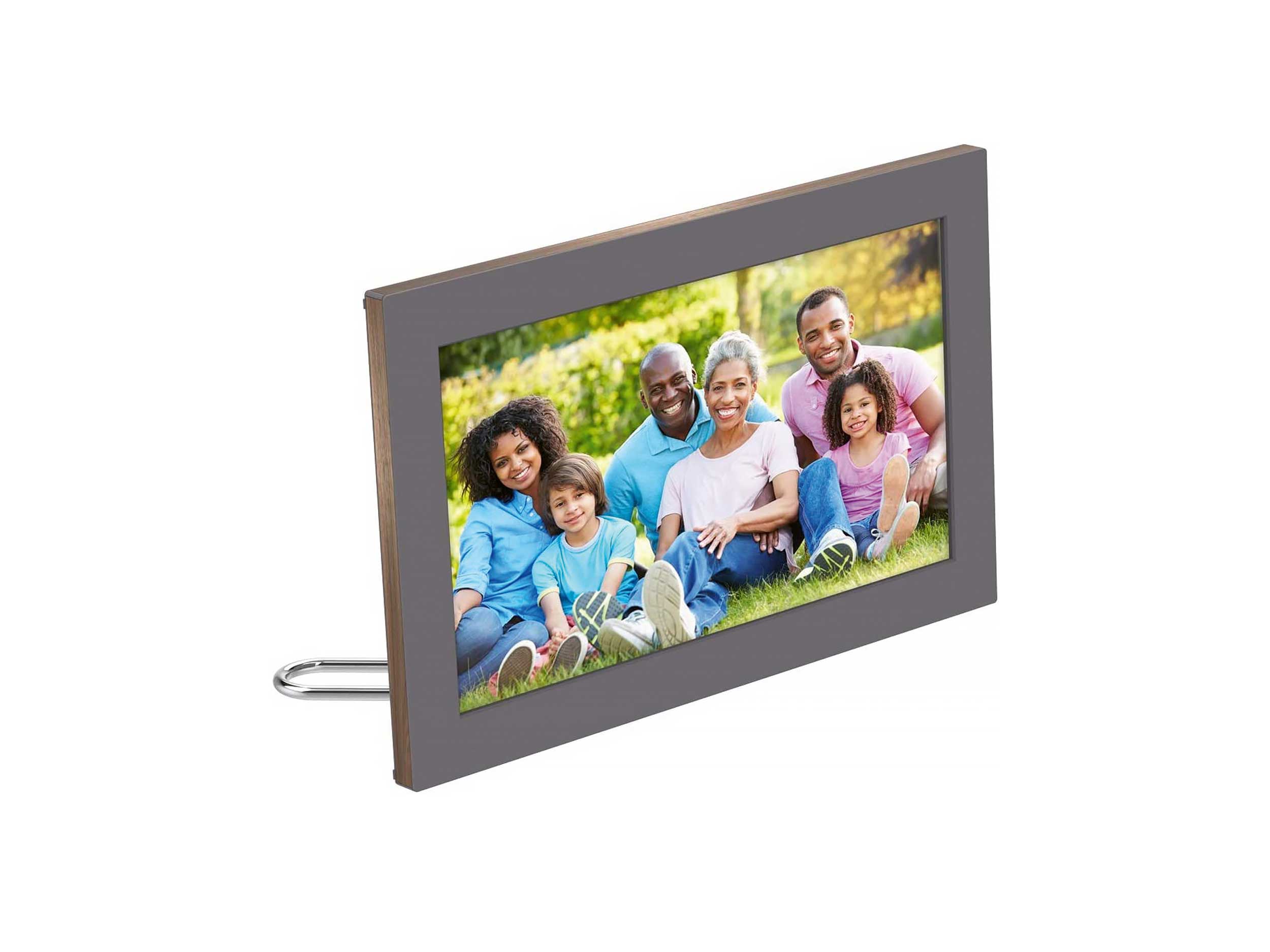 Ein digitaler Bilderrahmen auf der Wohnzimmerkommode ist eine praktische Alternative. Vorausgesetzt, man wählt ein passendes Modell – denn die Auswahl ist riesig geworden. Manche kann man aufhängen, andere nur stellen, manche kann man über berührungsempfindliche Sensoren an der Rahmenseite oder direkt am Bildschirm per Touchscreen bedienen.