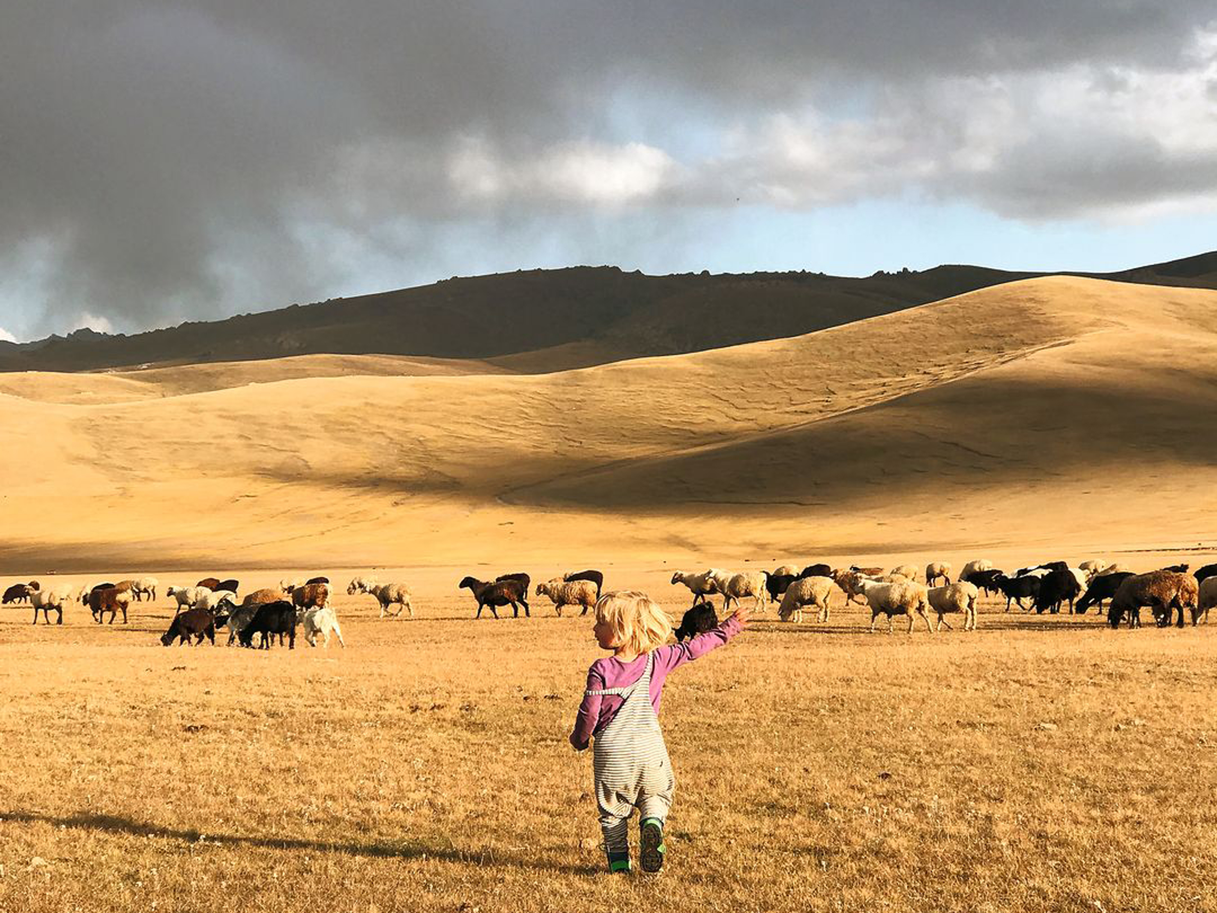 In der Hauptstadt Bishkek angekommen, gibt es nun noch einiges zu erledigen; wir brauchen ein Mietauto, Kochutensilien, eine Landkarte, eine kirgisische SIM-Karte, eine Schaufel, damit wir uns jeweils unsere eigene Toilette schaufeln können, und die nötigsten Essensvorräte. Auf dem Osh Bazar will mein Mann Cédéric immer noch mehr kaufen, hier noch eine Emaille-Schüssel, da noch ein Messer. Gemütlich schlendert er von Stand zu Stand. Dean will vor allem im Hotelpool schwimmen und reklamiert. Sein Bruder Juul will gerade gar nichts mehr, er legt sich auf den Boden und schreit. Die Kirgisen bleiben stehen und starren uns an – Mist, kennen die das nicht? Ein Mann bringt ihm eine Banane, zwecklos, eine anderer redet wild auf uns ein. Es hört sich an, als möchte er uns einen Exorzisten vermitteln. Die Überreizung geht auch an mir nicht spurlos vorbei.
