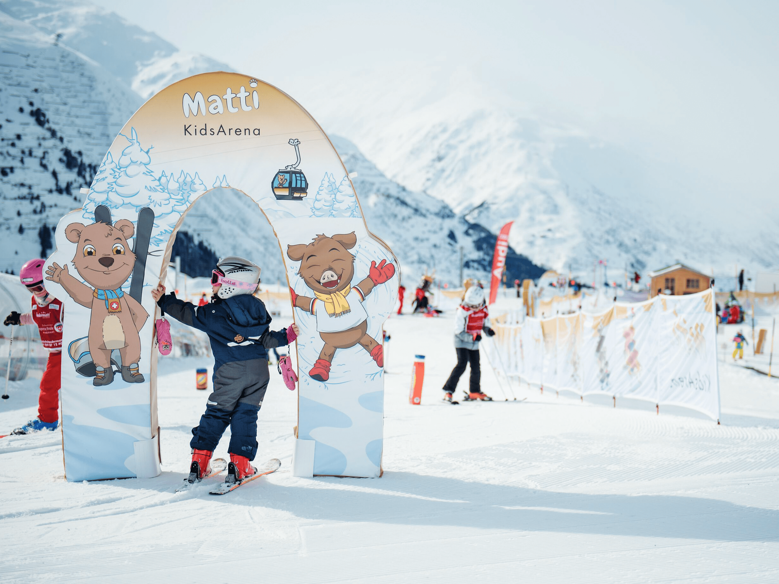 Das Skigebiet Andermatt+Sedrun+Disentis ist ganz auf Familien ausgerichtet: Stemmbogen üben die Kinder am Sonnenhang in Mattis KidsArena, für den Hunger gibts im Familienrestaurant kindgerechte Menus. Und danach lockt ein Indoorspielplatz mit Bärenhöhle.