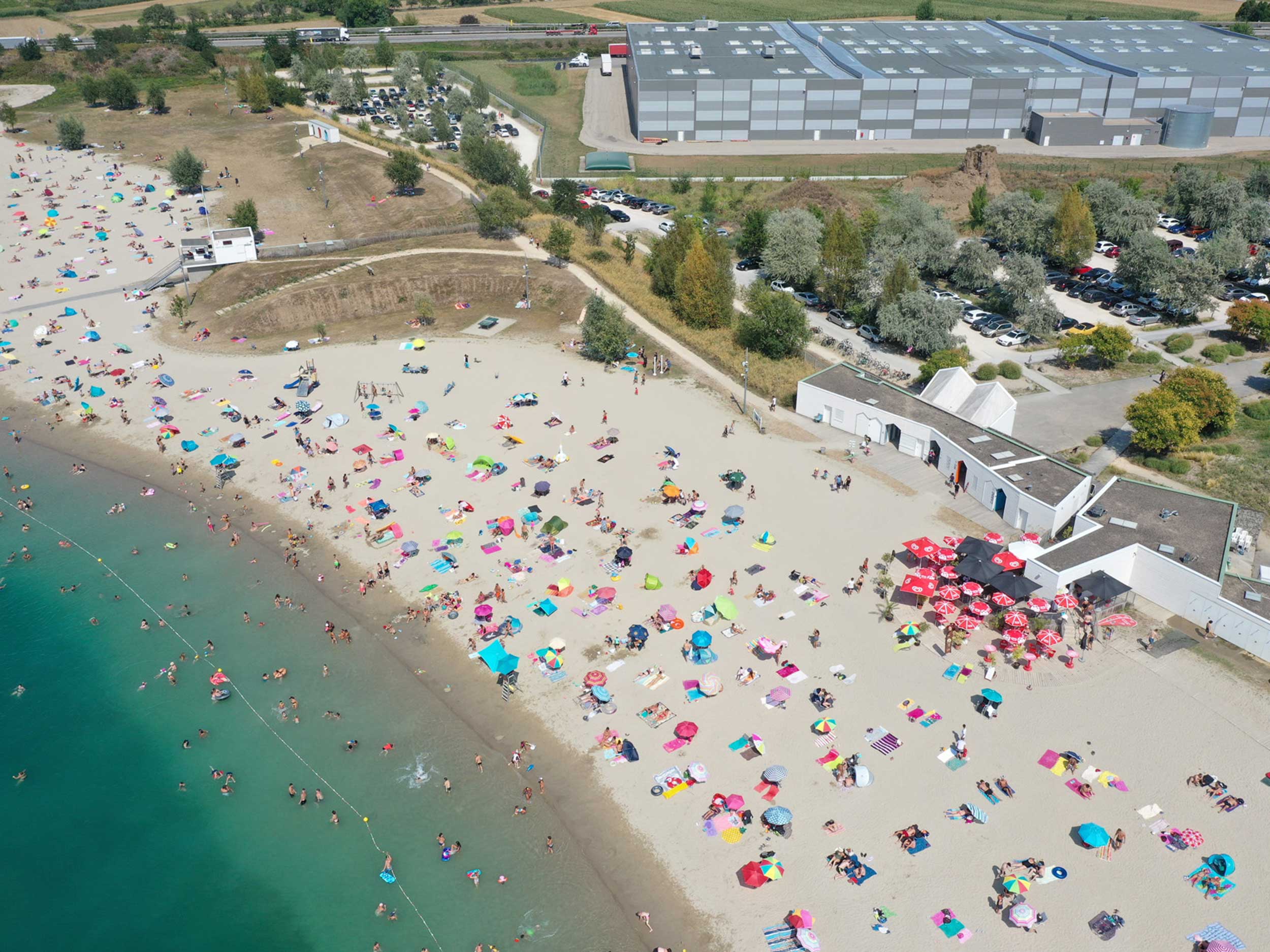 Ja, auch das gibt es in Colmar. Einen Badesee. 380 Meter lang ist der Sandstrand Base Nautique entlang des Sees Gravière. Dort gibts einen tollen Spielplatz und einen Paddel- und Tretbootverleih.