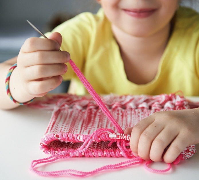 Zwei gleich grosse Teppichstücke (besonders hübsch mit Fransen dran) zuschneiden. Mit Nähmaschine (Vorderseite auf Vorderseite) zusammennähen. Umdrehen und oberhalb der Fransen durchnähen. Den Rand abzickzacken und umschlagen. Nun den Rand mit Wolle von Hand umnähen – von hinten einstechen und vorne wieder rausziehen. Als Schulterriemen wird eine Kordel gedreht. Diese mit ein paar Stichen an den Seiten der Tasche annähen. Wer Lust hat, kann die Tasche noch mit Stickereien versehen – das macht sie noch persönlicher.