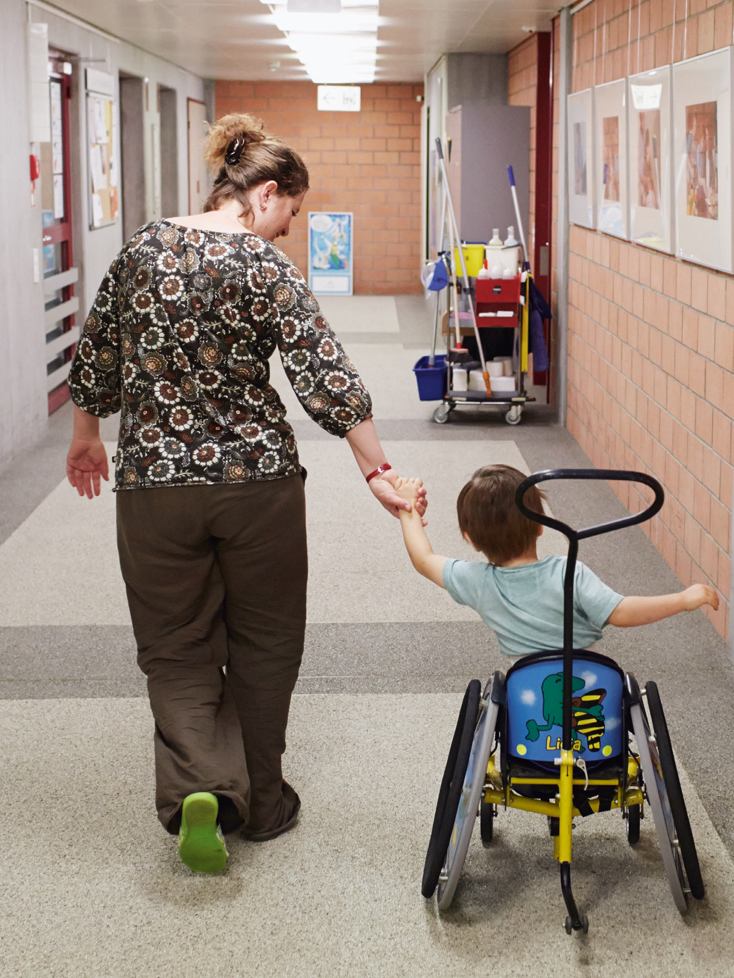 Bei dem Stichwort «Reha» kommen einem automatisch Senioren in den Sinn. Rehabilitation nach Herzinfarkt, Schlaganfall oder nach Hüftgelenks-OP. Dass auch Kinder und Jugendliche mitunter spezielle Therapien brauchen, um verlorengegangene Fähigkeiten wiederzuerlernen, ist vielen nicht bewusst. Im Rehabilitationszentrum, das vor den Toren Zürichs steht und zum Zürcher Kinderspital gehört, betreuen Therapeuten, Pflegende und Ärzte bis zu 47 junge Patienten rund um die Uhr. Die Kinder kommen aus allen Landesteilen und manchmal sogar aus dem Ausland. Wer nach Affoltern verlegt wird, hat oft einen langen Spitalaufenthalt hinter sich. Ein Drittel der Reha-Kids leidet an den Folgen eines Unfalls, ein Drittel hat eine akute Erkrankung hinter sich und das letzte Drittel ist chronisch krank oder behindert. «Es ist nicht entscheidend, welche Diagnosen die Patienten mitbringen», sagt Andreas Meyer-Heim, der ärztliche Leiter der Einrichtung. «Uns interessiert vor allem, was die Mädchen und Jungen zum Zeitpunkt ihres Eintritts können und welche Ziele wir gemeinsam setzen.» Manche Kinder müssen erst wieder das Schlucken lernen, andere können kaum noch sprechen. In vielen Fällen ist die Reha vor allem ein Kampf gegen die Schwerkraft. Sich aufsetzen, sitzen bleiben, aufstehen, laufen – all das sind komplexe motorische Abläufe, die gerade bei Schädel-Hirn-Verletzungen häufig in Mitleidenschaft gezogen werden. Die gute Nachricht: Ein Teil der bereits verloren geglaubten Fähigkeiten kann durch massgeschneiderte Reha-Therapien reaktiviert werden. Das braucht viel Geduld und es gibt keine Garantien. Kleinere Wunder geschehen in Affoltern jedoch täglich. Wenn ein Meilenstein geschafft ist, dann fühlt sich das für die Kinder an, als hätten sie fliegen gelernt. Aus dieser Perspektive betrachtet ist Felix nicht etwa in einer Reha-Klinik, sondern in einer Kinderflugschule.
