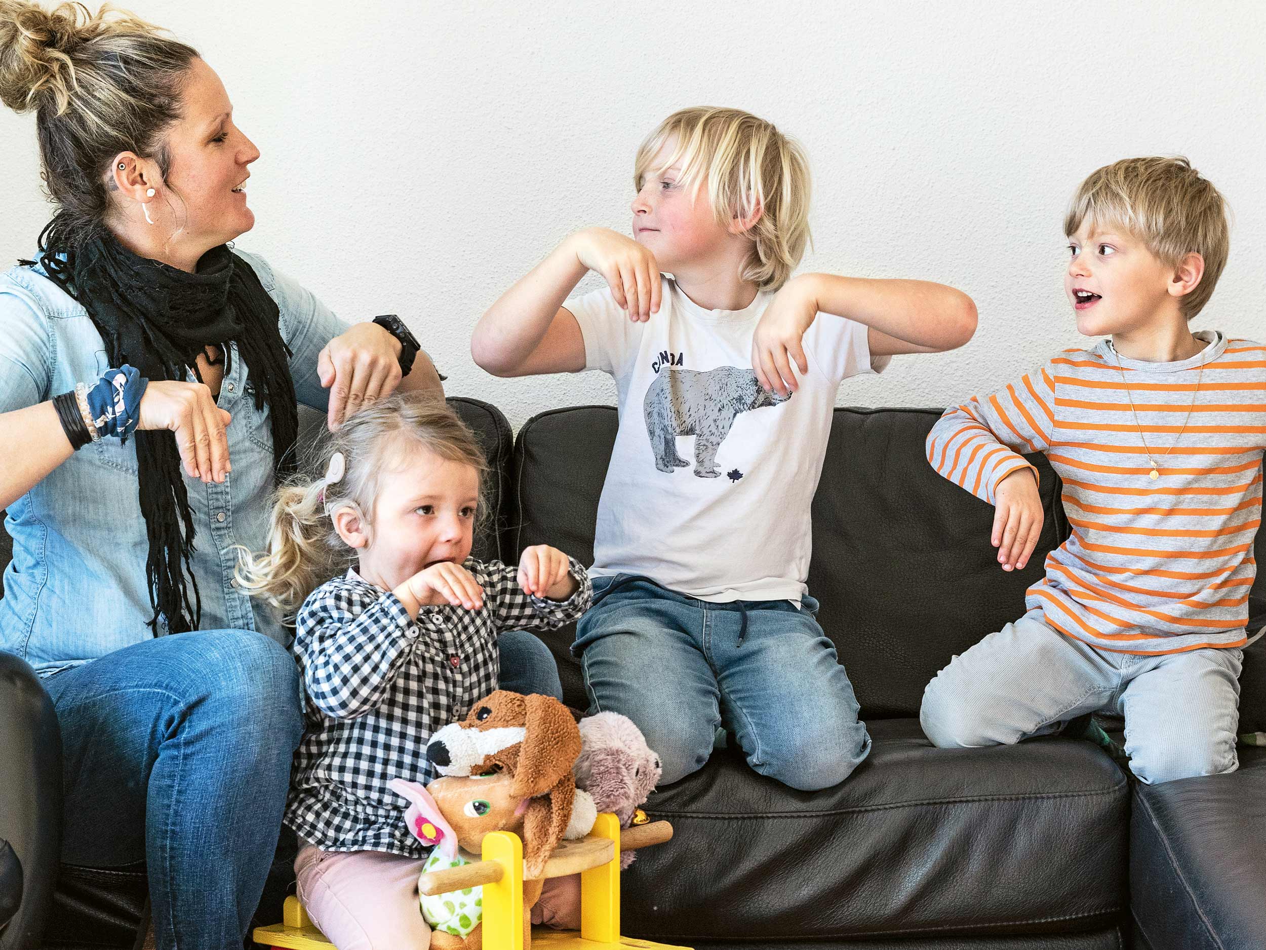 Auch Zoe ist alles andere als stumm. Sie ruft ihre Brüder – mit ganz leicht verwischtem Klang – beim Namen oder wehrt sich lautstark, wenn sie genug hat vom Memory-Spiel. Ihre Mutter Salome ist froh, dass ihre Kleine von den beiden Jungs schon früh kräftig «beschallt» wurde, wie sie es nennt. «Dadurch können wir für Zoe das Beste herausholen». Ob Zoe dereinst die öffentliche Schule besuchen kann, wird sich zeigen. «Ein bisschen Angst davor habe ich manchmal schon», sagt Salome, «ich hoffe, sie wird nicht gehänselt wegen ihrer nicht perfekten Lautsprache.»