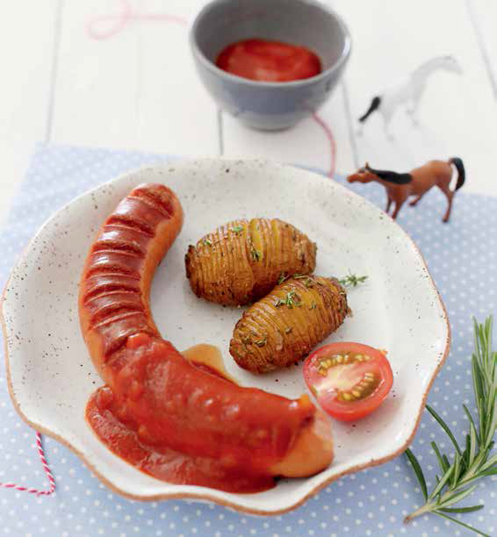 Currywurst mit Hasselback-Kartoffeln