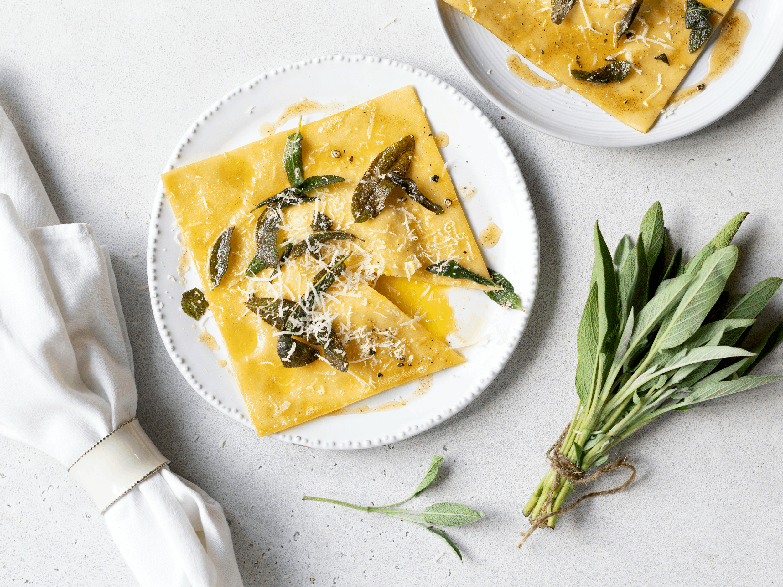 7 Butter in einer Pfanne schmelzen. Den Salbei darin knusprig braten und die gekochten Ravioli kurz in der Salbeibutter schwenken, leicht salzen.