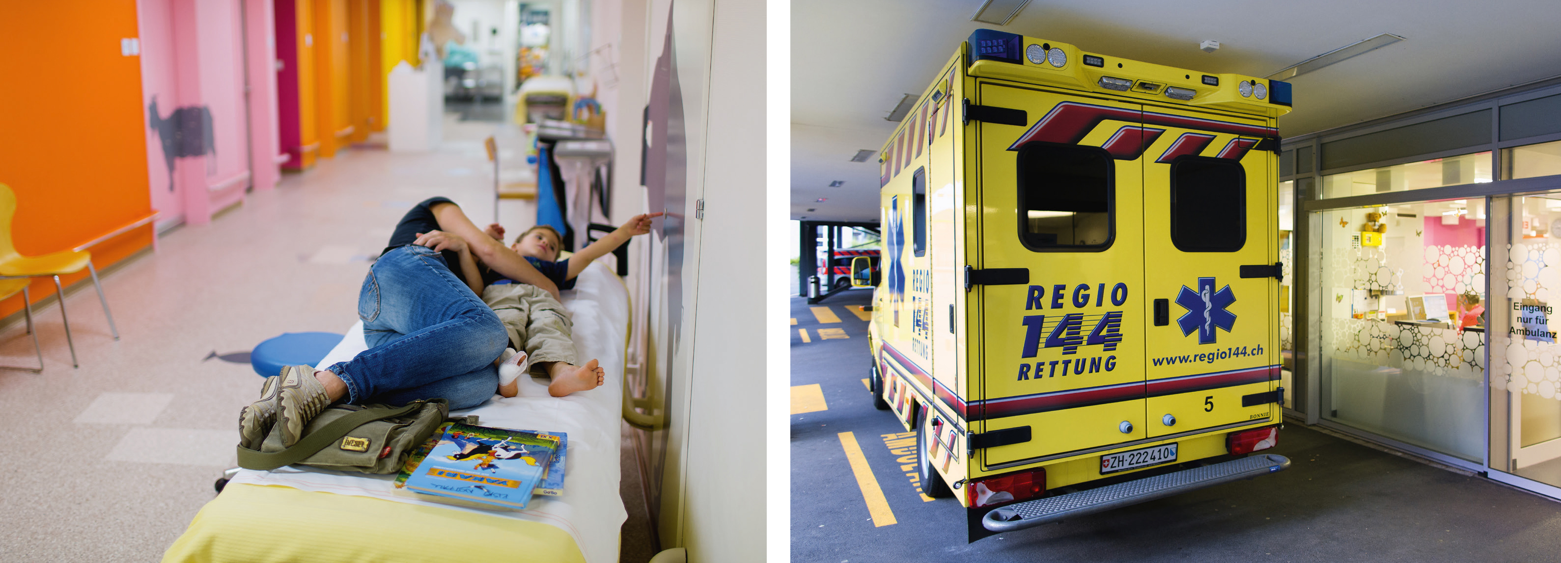 Zwei grosse Flachbildschirme hängen über dem Herz der Notfallaufnahme, dem Eingang zum Büro des Arzt- und Pflegeteams im Kinderspital Zürich. Sie sind Orientierungshilfe für die sieben diensthabenden Ärzte und Pflegefachfrauen. Für jeden der kleinen Patienten im Warteraum oder in einem der Behandlungszimmer ist eine Zeile reserviert. Links steht die exakte Eintrittszeit, daneben Name und Geburtsdatum, die Nummer des Behandlungszimmers, das Gewicht, das beim Eintritt gemessen wurde und für eine allfällige Medikamentendosierung wichtig ist. Weiter ist ersichtlich, wer sich um das Kind kümmert, ob Massnahmen wie Röntgen verordnet und durchgeführt wurden und schliesslich noch die Dringlichkeit des Falls und der Eintrittsgrund.