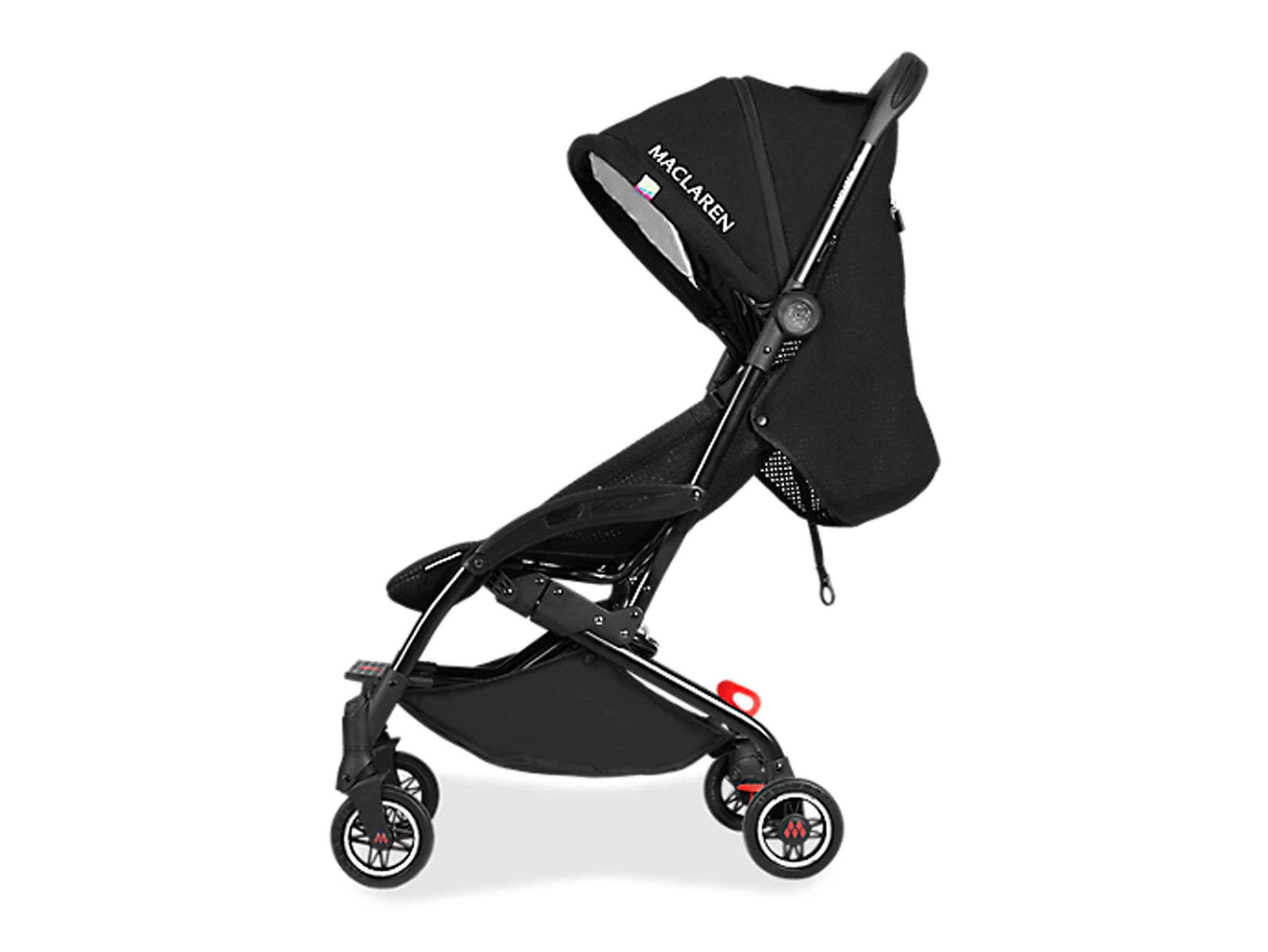 Maclaren Atom Buggy: Mit seinen 5,5 kg ist der Atom Buggy ein Leichtgewicht. Das Fahrgestell besteht aus dem gleichen Aluminium, wie es für Luftfahrtzeuge verwendet wird. Auch deshalb ist das Modell bei Städtern beliebt: Selbst in alte Trams kann dieser Kinderwagen ohne Hexenschuss gehievt werden. Zudem hat er – zusammengeklappt – das Mass eines Trolley-Handgepäcks, weshalb er ein treuer Flugbegleiter ist. Komfort bietet er dennoch: Der Wagen ist gefedert, die Rückenlehne ist bis in die flache Liegeposition verstellbar und das grosse Sonnendach lässt die Kleinen friedlich schlummern.