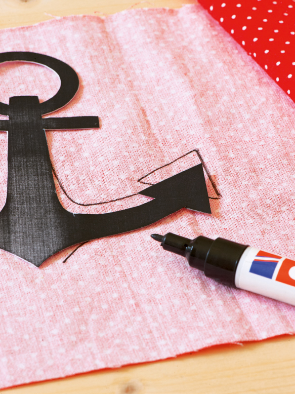 2 Diese Papierschablone auf Stoff übertragen und ebenfalls ausschneiden.