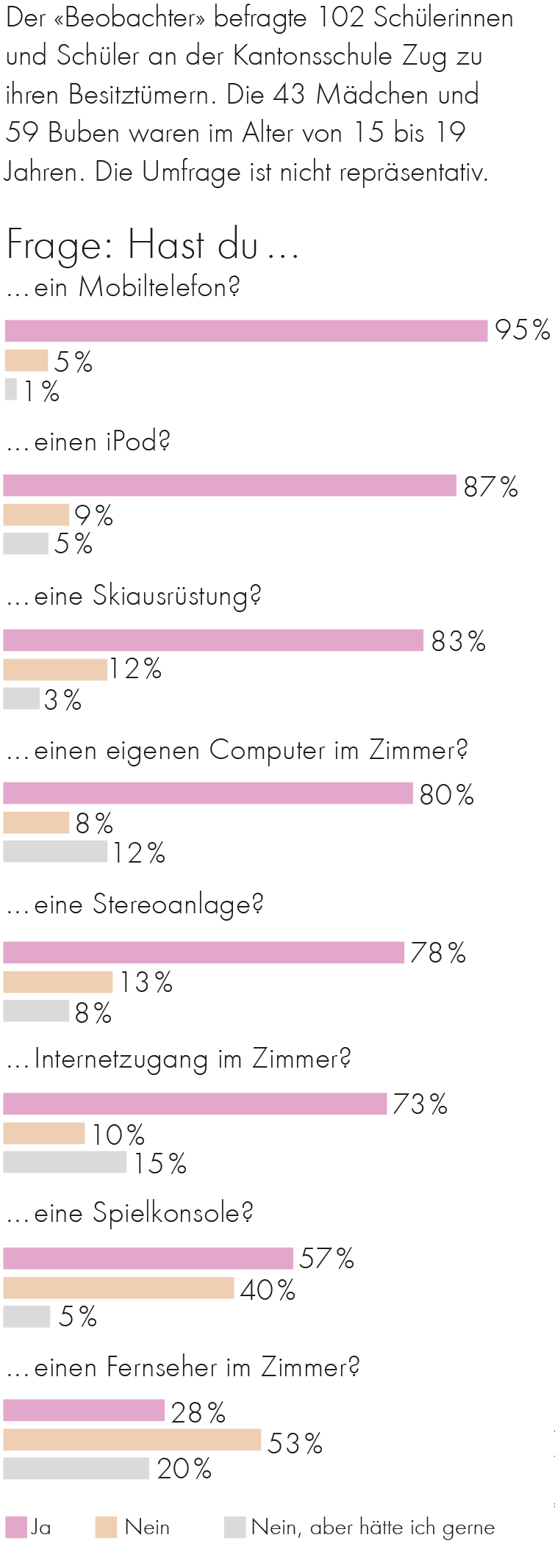 Was treibt uns Eltern eigentlich an, immer tiefer in die Taschen zu greifen? Sind wir allesamt zu Helikoptervätern und Tigermüttern mutiert, die das «Projekt Kind» über alles stellen, und unsere 1,52 Kinder dermassen vergöttern, dass wir sie permanent fördern, bespielen und überwachen müssen? Und geht es uns dabei wirklich um das Wohl unserer Kinder? Oder vielleicht im Grunde doch um unser eigenes Glück, weil wir uns selbst misstrauen; als wären wir eine Bedrohung für unsere Kinder, wenn wir nicht das richtige Essen, die richtige Kleidung, den richtigen Kinderwagen kaufen. Natürlich wollen wir alles richtig machen. Schliesslich sind unsere Kinder längst zum Statussymbol geworden, unser Produkt für die Welt, an dessen Qualität wir als Eltern gemessen werden. Gibt es da welche, die sich freimütig als Versager outen möchten? Oder ihr Kind freiwillig zum Outsider abstempeln lassen, bereit zum Abschuss, weil es das Smartphone, das doch alle anderen längst haben, einfach nicht bekommt? Nein, das wollen wir nicht. Da verzichten wir lieber auf ein neues Paar Winterstiefel und lassen die alten dafür ein weiteres Mal besohlen.